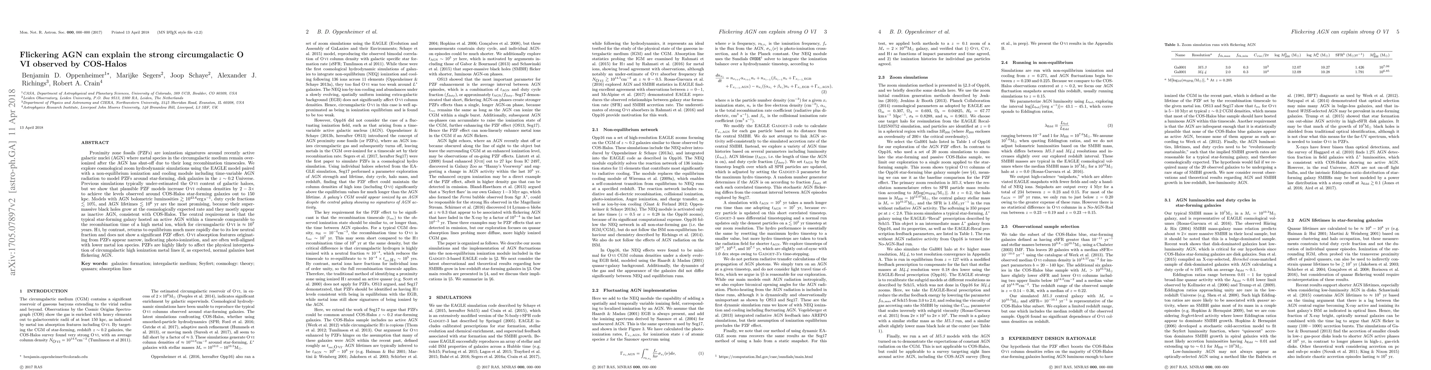 This paper demonstrates that flickering active galactic nuclei (AGN) can significantly increase the observed O VI column densities in the circumgalactic medium, resolving discrepancies with previous simulations. The study uses cosmological zoom simulations with the EAGLE model to show that Proximity Zone Fossils (PZFs) around star-forming galaxies can explain the strong O VI observed by COS-Halos, provided the AGN have short lifetimes and low duty cycles.