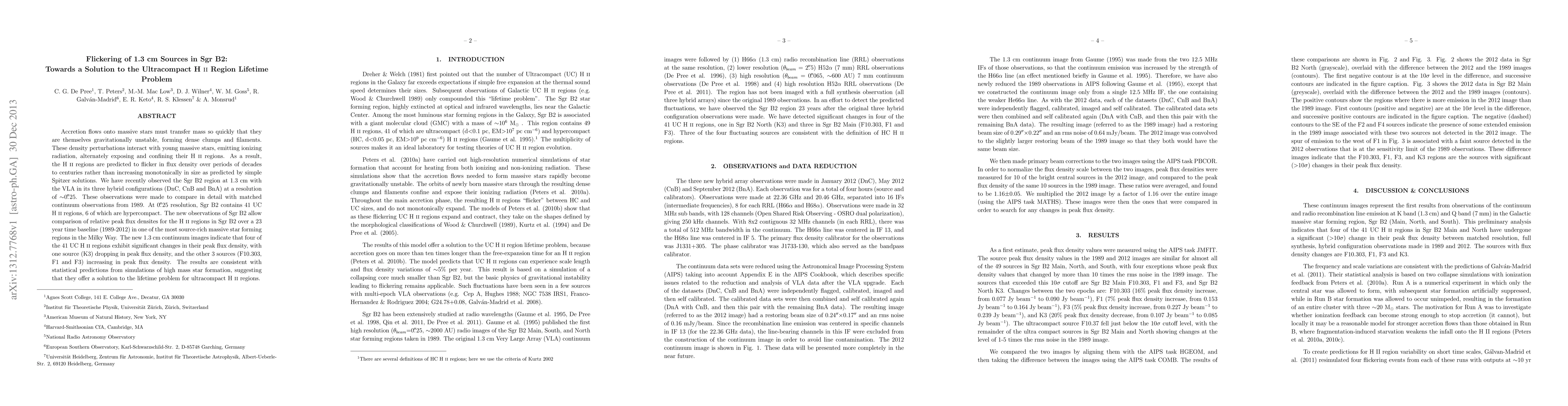 The VLA observations of the Sgr B2 region at 1.3 cm reveal flickering in the flux density of 4 out of 41 ultracompact HII regions over a 23-year period, supporting the hypothesis that density perturbations in accretion flows cause these regions to flicker rather than expand monotonically. This behavior aligns with predictions from simulations of high mass star formation, potentially resolving the ultracompact HII region lifetime problem.