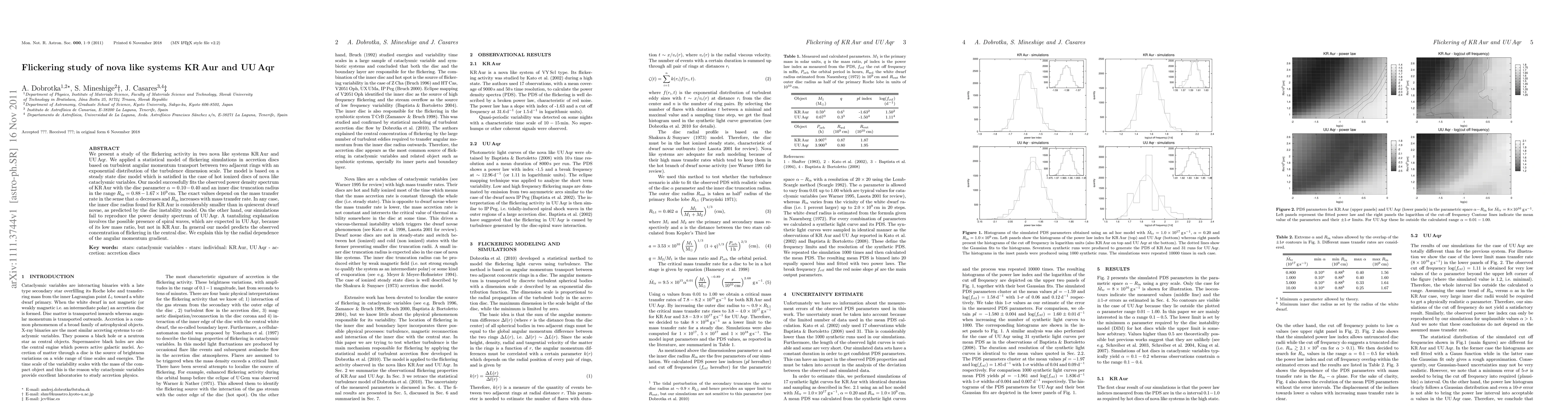 The study develops and applies a statistical model of flickering simulations in accretion discs, successfully fitting the PDS of KR Aur and providing insights into disc properties.