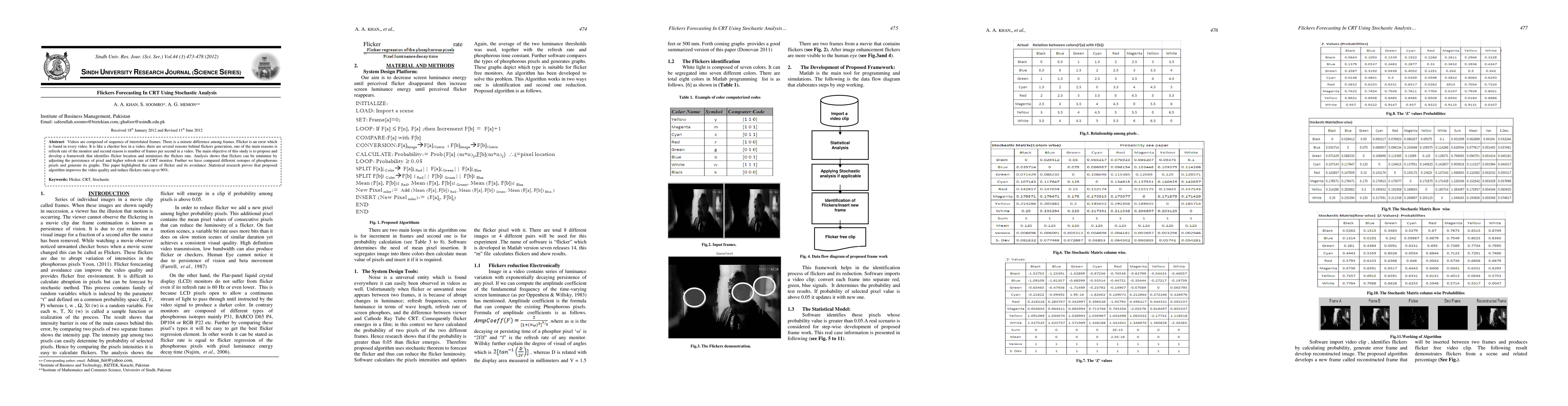 Videos are composed of sequence of interrelated frames. There is a minute difference among frames. Flicker is an error which is found in every video. It is like a checker box in a video, there are several reasons behind flickers generation, one of the main reasons is refresh rate of the monitor and second reason is number of frames per second in a video. The main objective of this study is to propose and develop a framework that identifies flicker location and minimizes the flickers rate. Analysis shows that flickers can be minimize by adjusting the persistence of pixel and higher refresh rate of CRT monitor. Further we have compared different isotopes of phosphorous pixels and generate its graphs. This paper highlighted the cause of flicker and its avoidance .Statistical research proves that proposed algorithm improves the video quality and reduce flickers ratio up to 90%.
