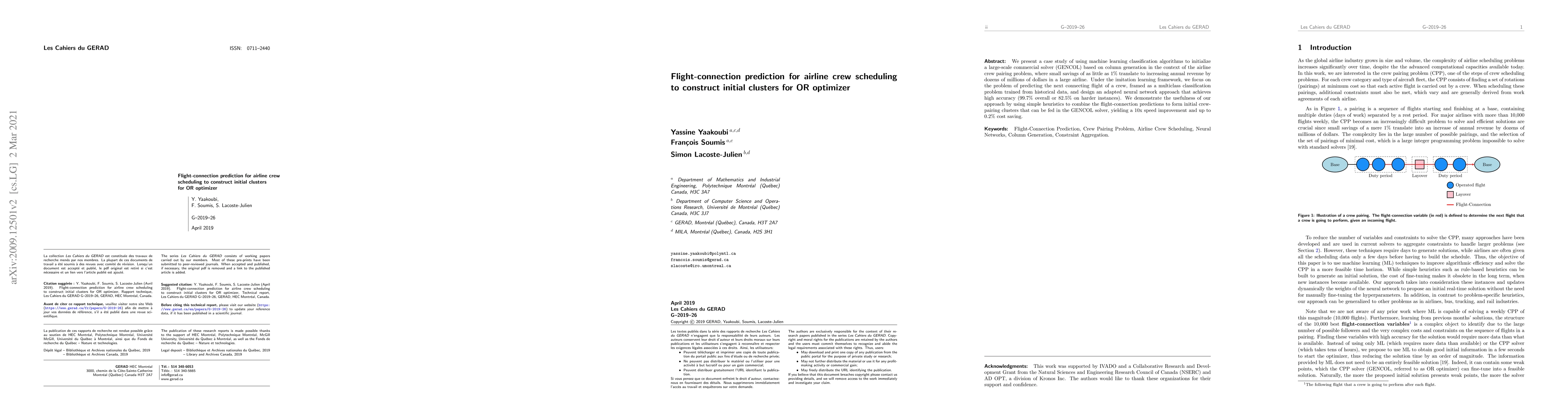 A hybrid approach combining machine learning and optimization techniques was used to solve the airline crew pairing problem.