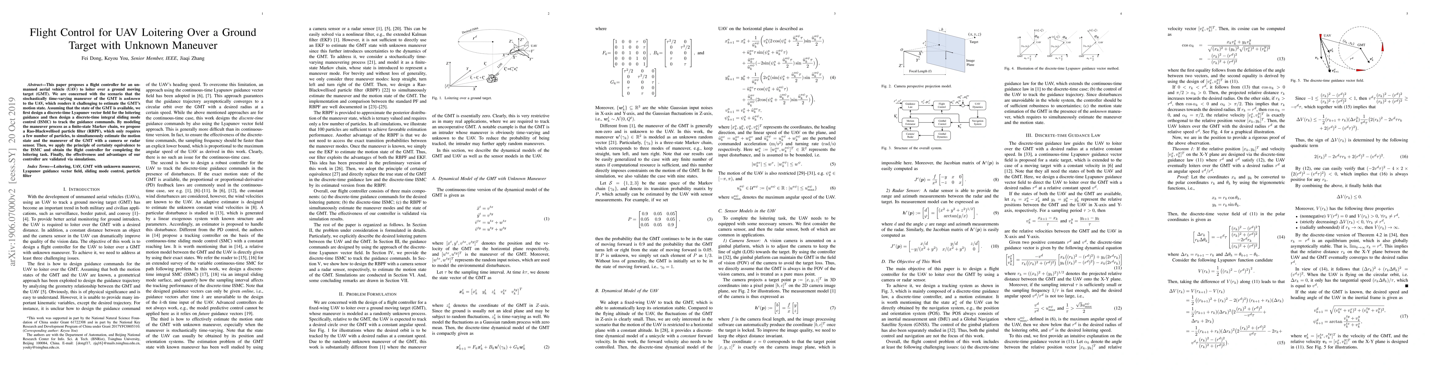 This paper develops a flight controller for UAVs to loiter over a ground moving target with unknown maneuvers, employing a Lyapunov vector field, integral sliding mode control, and a Rao-Blackwellised particle filter for state estimation and maneuver prediction. Simulation results validate the controller's effectiveness.