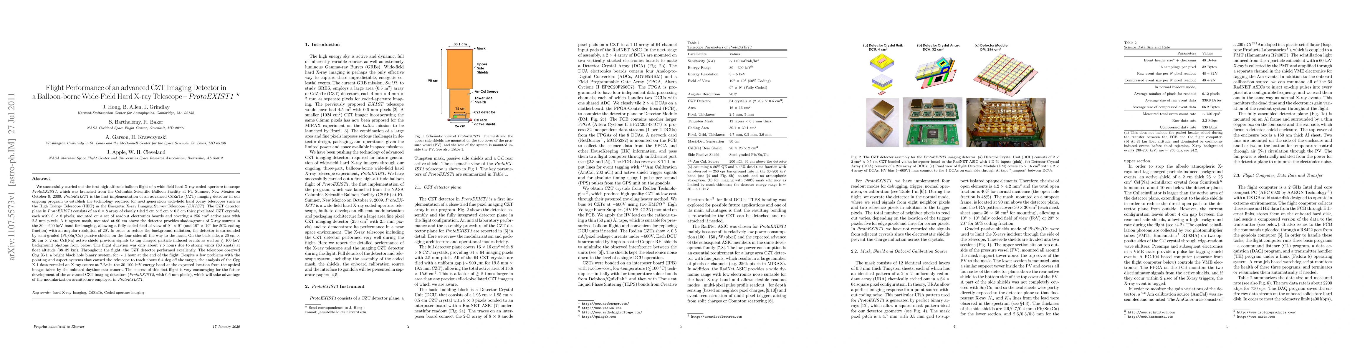 The first high-altitude balloon flight of ProtoEXIST1, a wide-field hard X-ray telescope with an advanced CdZnTe (CZT) imaging detector, was successfully conducted in 2009. The CZT detector demonstrated excellent performance, capturing a significant X-ray source from Cyg X-1 despite tracking issues, indicating promising results for future CZT imaging technology.