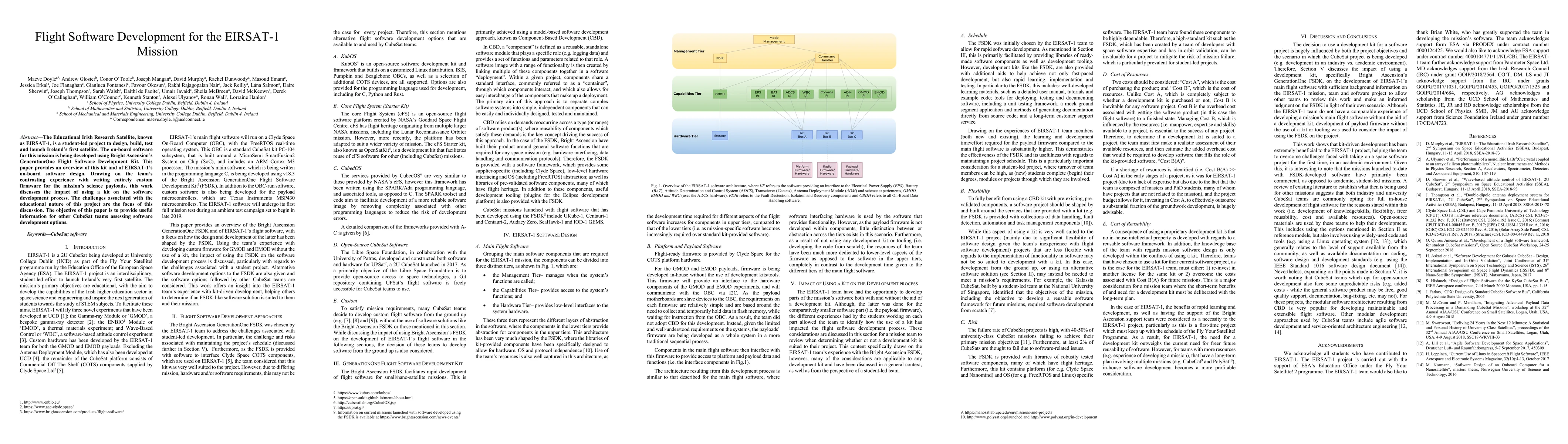 This paper discusses the use of Bright Ascension's GenerationOne Flight Software Development Kit for EIRSAT-1, a student-led satellite project, highlighting its benefits and challenges in software development for educational projects.