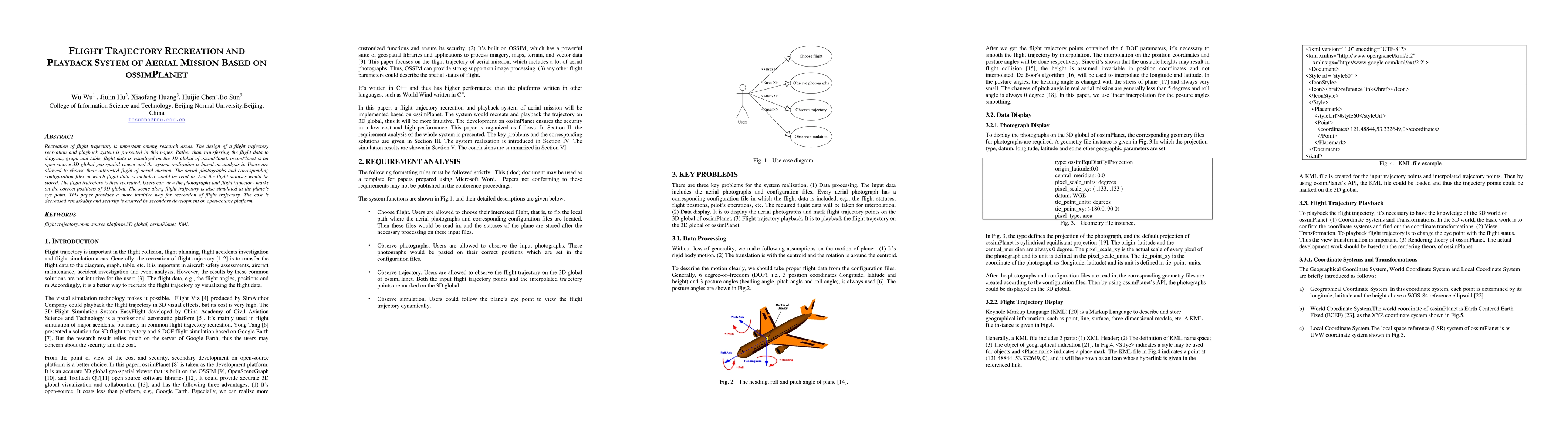 This paper presents a flight trajectory recreation and playback system based on ossimPlanet, visualizing flight data on a 3D global geo-spatial viewer. It allows users to select specific aerial missions, recreate flight trajectories, and simulate scenes from the plane's perspective, offering a cost-effective and secure method through open-source platform development.