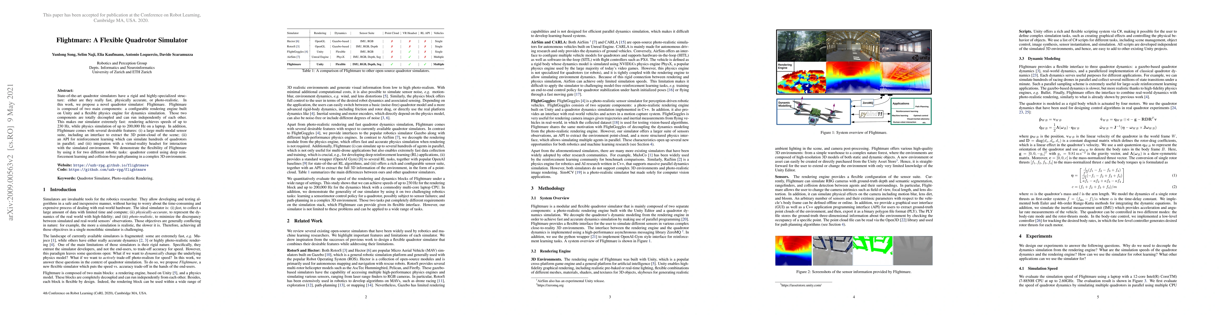 A novel quadrotor simulator called Flightmare offers fast rendering speeds of up to 230 Hz and high physics simulation rates, making it suitable for various robotic tasks such as control and path planning.