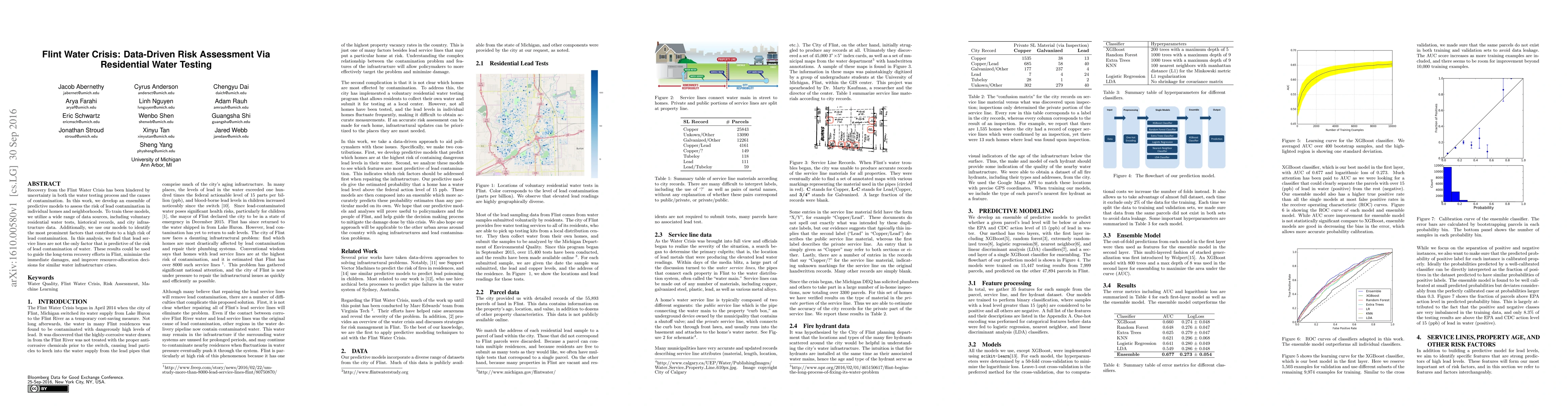 Recovery from the Flint Water Crisis has been hindered by uncertainty in both the water testing process and the causes of contamination. In this work, we develop an ensemble of predictive models to assess the risk of lead contamination in individual homes and neighborhoods. To train these models, we utilize a wide range of data sources, including voluntary residential water tests, historical records, and city infrastructure data. Additionally, we use our models to identify the most prominent factors that contribute to a high risk of lead contamination. In this analysis, we find that lead service lines are not the only factor that is predictive of the risk of lead contamination of water. These results could be used to guide the long-term recovery efforts in Flint, minimize the immediate damages, and improve resource-allocation decisions for similar water infrastructure crises.