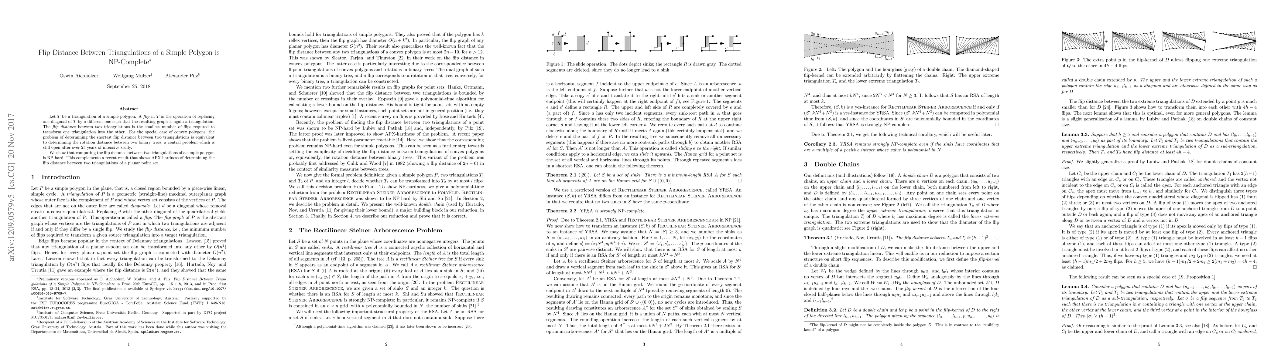 This paper demonstrates that computing the flip distance between two triangulations of a simple polygon is NP-complete, providing a significant complexity result that complements recent findings on the APX-hardness of the problem for planar point sets. This result highlights the computational difficulty of determining the minimum number of diagonal flips required to transform one triangulation into another.
