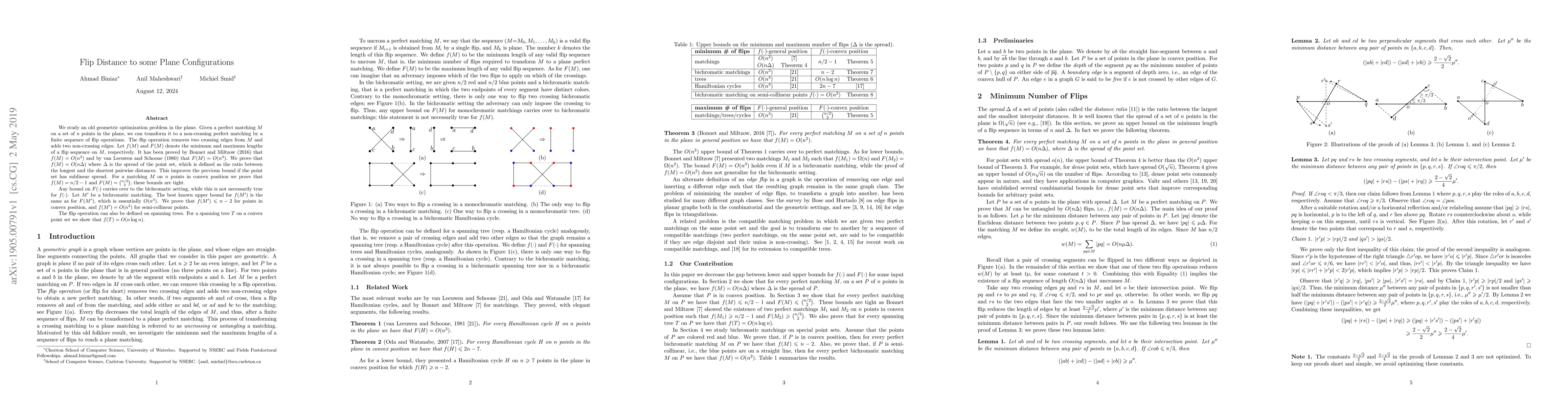 We study an old geometric optimization problem in the plane. Given a perfect matching $M$ on a set of $n$ points in the plane, we can transform it to a non-crossing perfect matching by a finite sequence of flip operations. The flip operation removes two crossing edges from $M$ and adds two non-crossing edges. Let $f(M)$ and $F(M)$ denote the minimum and maximum lengths of a flip sequence on $M$, respectively. It has been proved by Bonnet and Miltzow (2016) that $f(M)=O(n^2)$ and by van Leeuwen and Schoone (1980) that $F(M)=O(n^3)$. We prove that $f(M)=O(n\Delta)$ where $\Delta$ is the spread of the point set, which is defined as the ratio between the longest and the shortest pairwise distances. This improves the previous bound if the point set has sublinear spread. For a matching $M$ on $n$ points in convex position we prove that $f(M)=n/2-1$ and $F(M)={{n/2} \choose 2}$; these bounds are tight. Any bound on $F(\cdot)$ carries over to the bichromatic setting, while this is not necessarily true for $f(\cdot)$. Let $M'$ be a bichromatic matching. The best known upper bound for $f(M')$ is the same as for $F(M')$, which is essentially $O(n^3)$. We prove that $f(M')\le n-2$ for points in convex position, and $f(M')= O(n^2)$ for semi-collinear points. The flip operation can also be defined on spanning trees. For a spanning tree $T$ on a convex point set we show that $f(T)=O(n\log n)$.