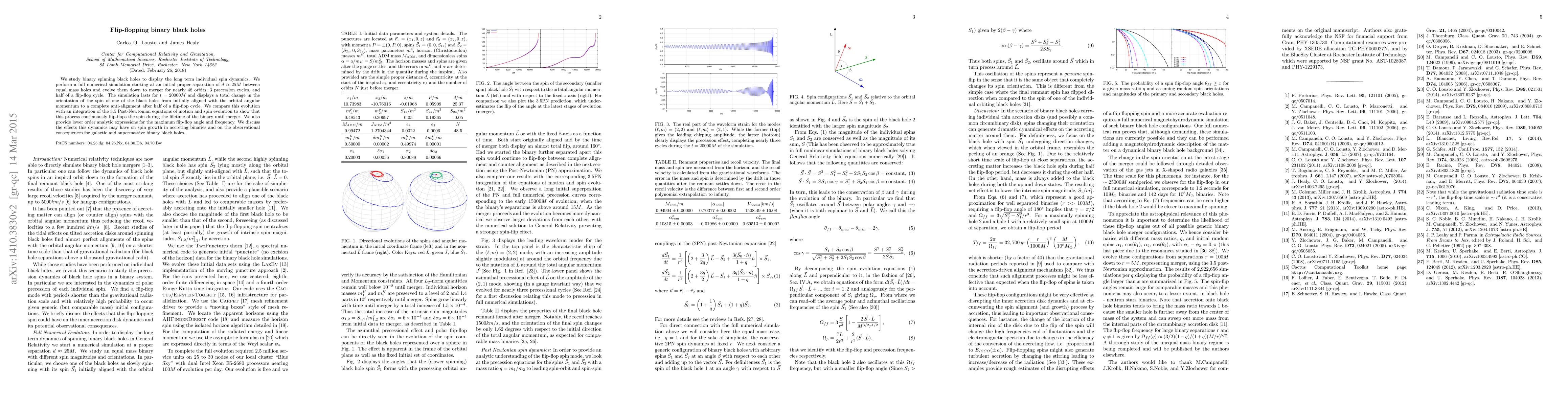 The paper presents a numerical simulation of binary spinning black holes, showing one black hole's spin flipping from alignment to anti-alignment with the orbital angular momentum over 48 orbits. The study compares this with 3.5 Post-Newtonian equations, revealing continuous spin flip-flopping until merger. Implications for spin growth in accreting binaries and observational consequences for galactic and supermassive black holes are discussed.