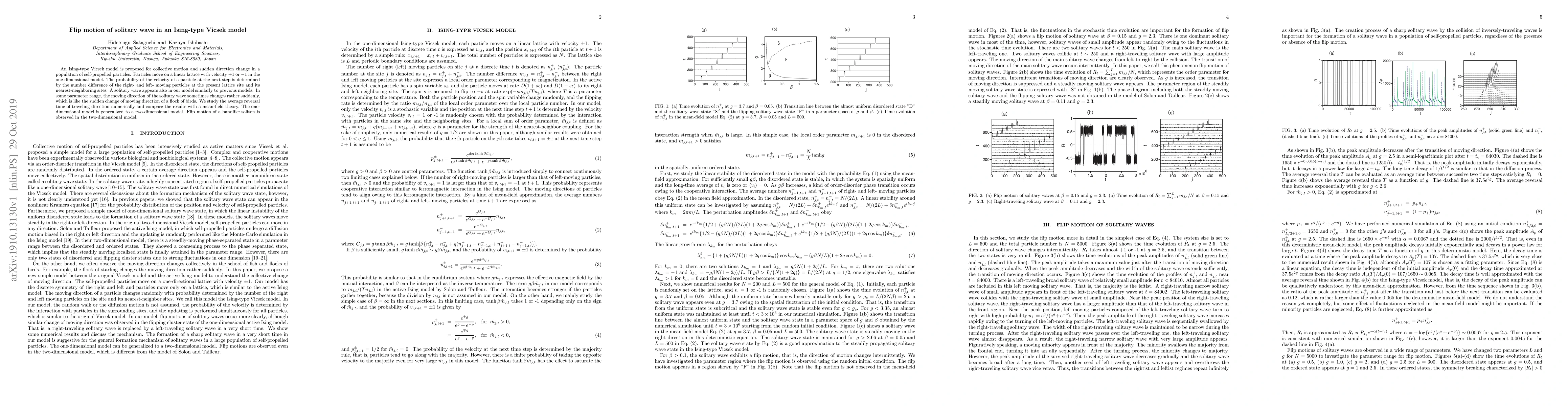 Researchers studied a model of self-propelled particles that can change direction suddenly, similar to bird flocks, and found flip motion in a bandlike soliton in a 2D model.