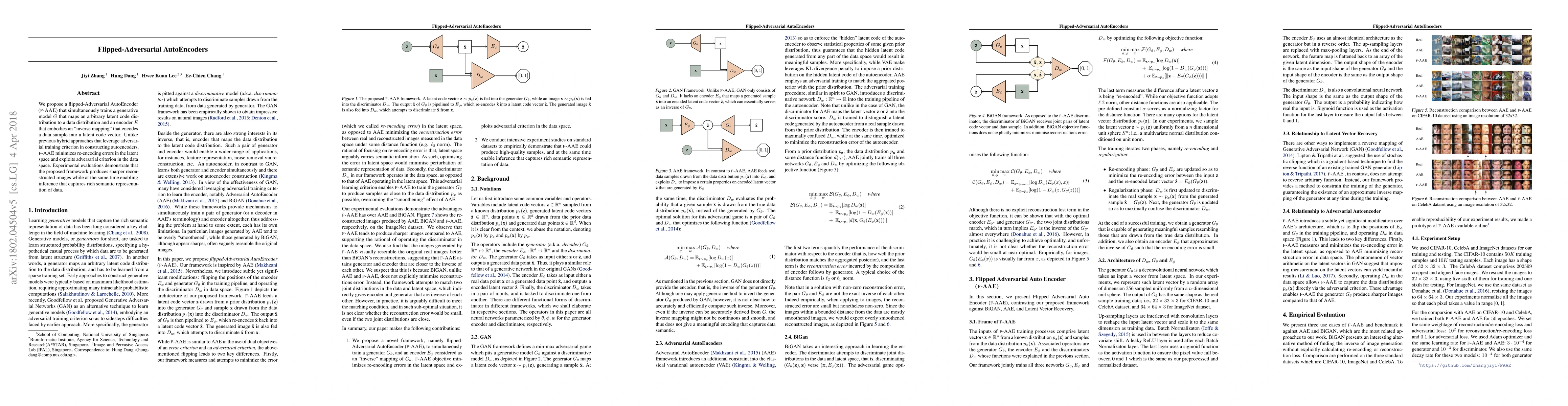 The paper introduces a flipped-Adversarial AutoEncoder (FAAE) that trains a generative model and an encoder to minimize re-encoding errors and use adversarial training for sharper image reconstruction, achieving rich semantic representation. Experimental results show improved image reconstruction and semantic inference.