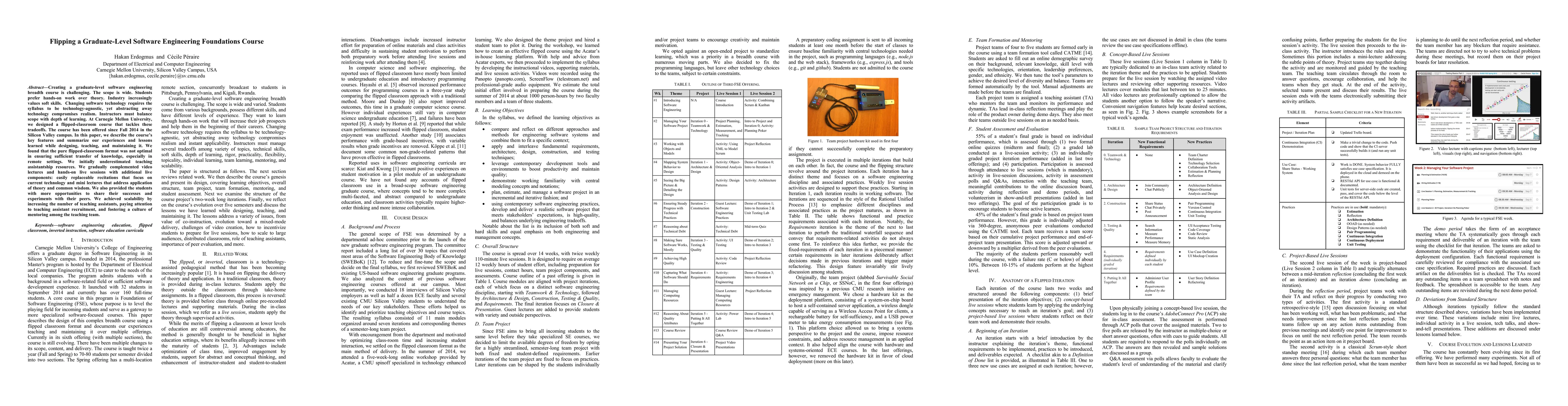 This paper details the design and implementation of a flipped-classroom graduate-level software engineering course at Carnegie Mellon University, highlighting the challenges of balancing scope and depth. The authors found that additional live components and increased teaching assistantship were necessary to enhance learning and scalability.