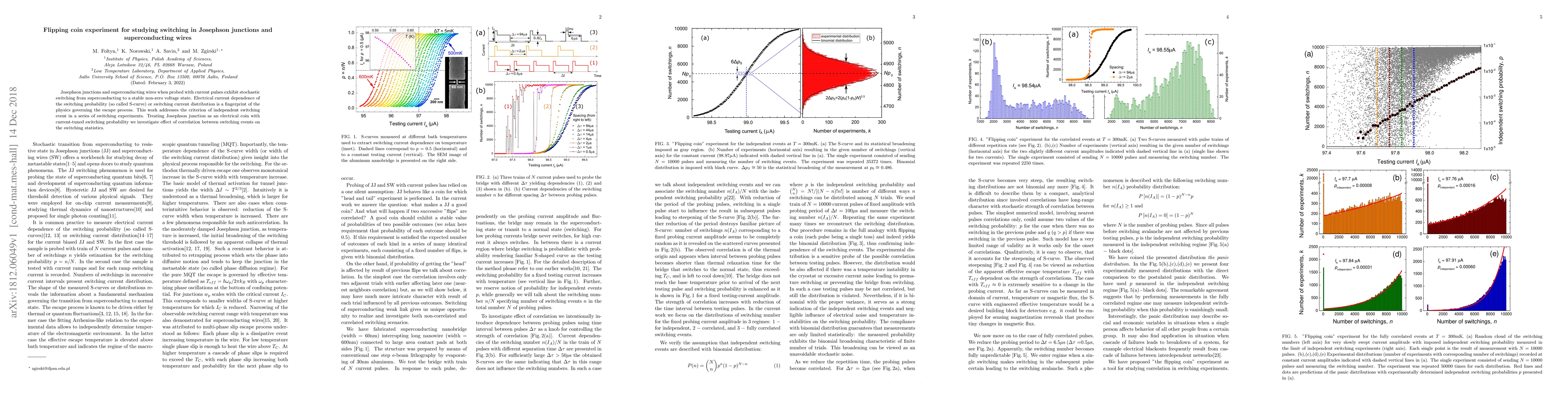 This paper investigates the stochastic switching behavior in Josephson junctions and superconducting wires, exploring the correlation between switching events and the statistical distribution of switching currents. It treats the junctions as electrical coins to analyze the independence criterion in a series of switching experiments.
