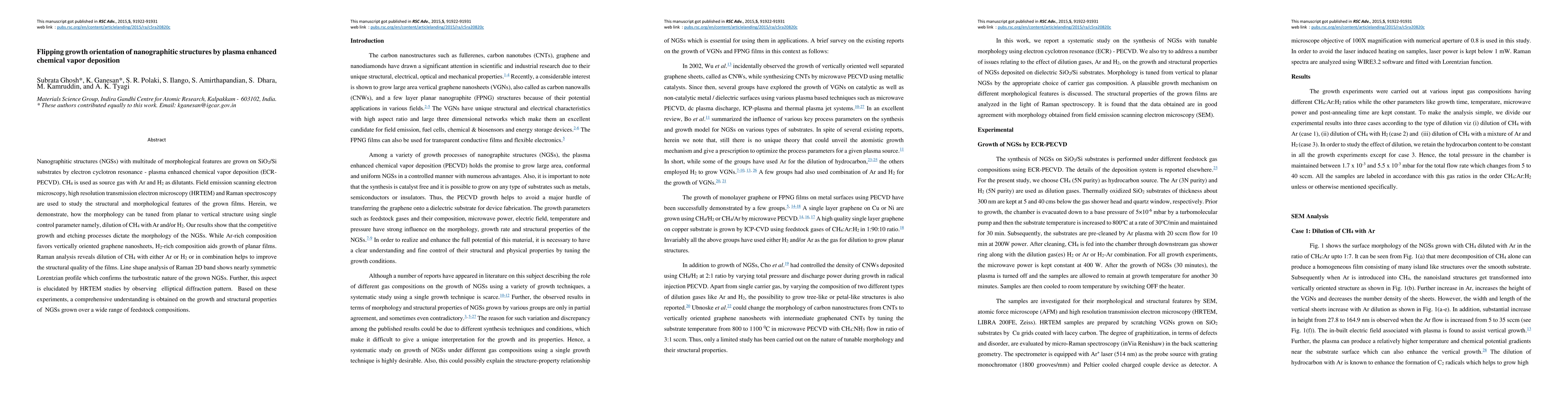 This paper explores the growth of nanographitic structures using plasma-enhanced chemical vapor deposition, demonstrating how varying the dilution of CH4 with Ar or H2 can flip the growth orientation from planar to vertical. The study reveals that Ar-rich conditions favor vertical graphene nanosheets, while H2-rich conditions promote planar growth, enhancing the structural quality of the films.