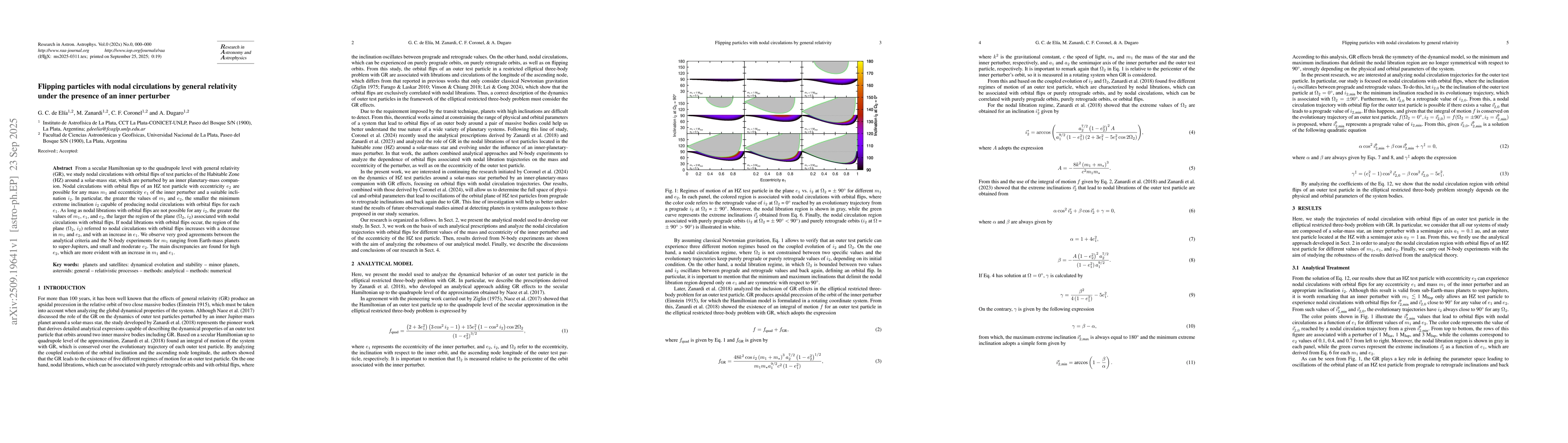 The study develops analytical expressions for calculating inclinations leading to nodal circulations with orbital flips, incorporating GR effects up to the quadrupole level in a secular Hamiltonian framework.