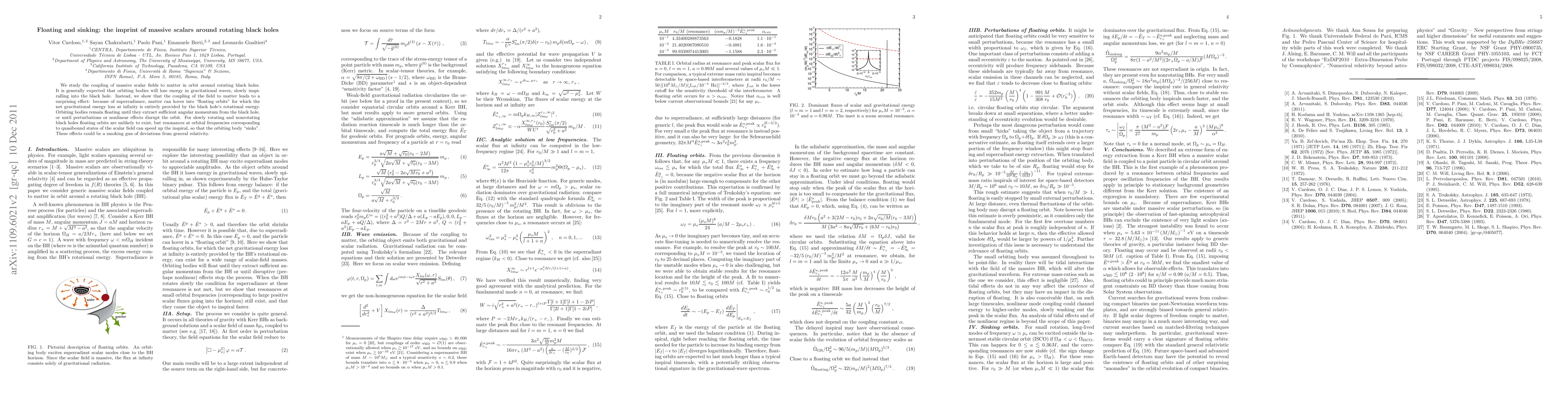 We study the coupling of massive scalar fields to matter in orbit around rotating black holes. It is generally expected that orbiting bodies will lose energy in gravitational waves, slowly inspiralling into the black hole. Instead, we show that the coupling of the field to matter leads to a surprising effect: because of superradiance, matter can hover into "floating orbits" for which the net gravitational energy loss at infinity is entirely provided by the black hole's rotational energy. Orbiting bodies remain floating until they extract sufficient angular momentum from the black hole, or until perturbations or nonlinear effects disrupt the orbit. For slowly rotating and nonrotating black holes floating orbits are unlikely to exist, but resonances at orbital frequencies corresponding to quasibound states of the scalar field can speed up the inspiral, so that the orbiting body "sinks". These effects could be a smoking gun of deviations from general relativity.