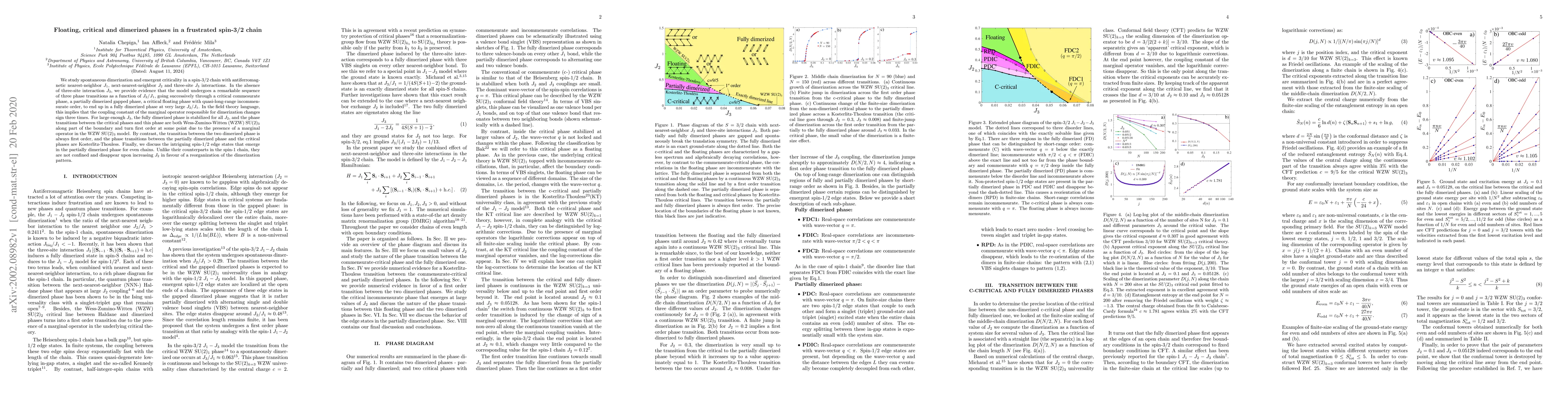 We study spontaneous dimerization and emergent criticality in a spin-3/2 chain with antiferromagnetic nearest-neighbor $J_1$, next-nearest-neighbor $J_2$ and three-site $J_3$ interactions. In the absence of three-site interaction $J_3$, we provide evidence that the model undergoes a remarkable sequence of three phase transitions as a function of $J_2/J_1$, going successively through a critical commesurate phase, a partially dimerized gapped phase, a critical floating phase with quasi-long-range incommensurate order, to end up in a fully dimerized phase at very large $J_2/J_1$. In the field theory language, this implies that the coupling constant of the marginal operator responsible for dimerization changes sign three times. For large enough $J_3$, the fully dimerized phase is stabilized for all $J_2$, and the phase transitions between the critical phases and this phase are both Wess-Zumino-Witten (WZW) SU(2)$_3$ along part of the boundary and turn first order at some point due to the presence of a marginal operator in the WZW SU(2)$_3$ model. By contrast, the transition between the two dimerized phase is always first order, and the phase transitions between the partially dimerized phase and the critical phases are Kosterlitz-Thouless. Finally, we discuss the intriguing spin-1/2 edge states that emerge in the partially dimerized phase for even chains. Unlike their counterparts in the spin-1 chain, they are not confined and disappear upon increasing $J_2$ in favour of a reorganization of the dimerization pattern.