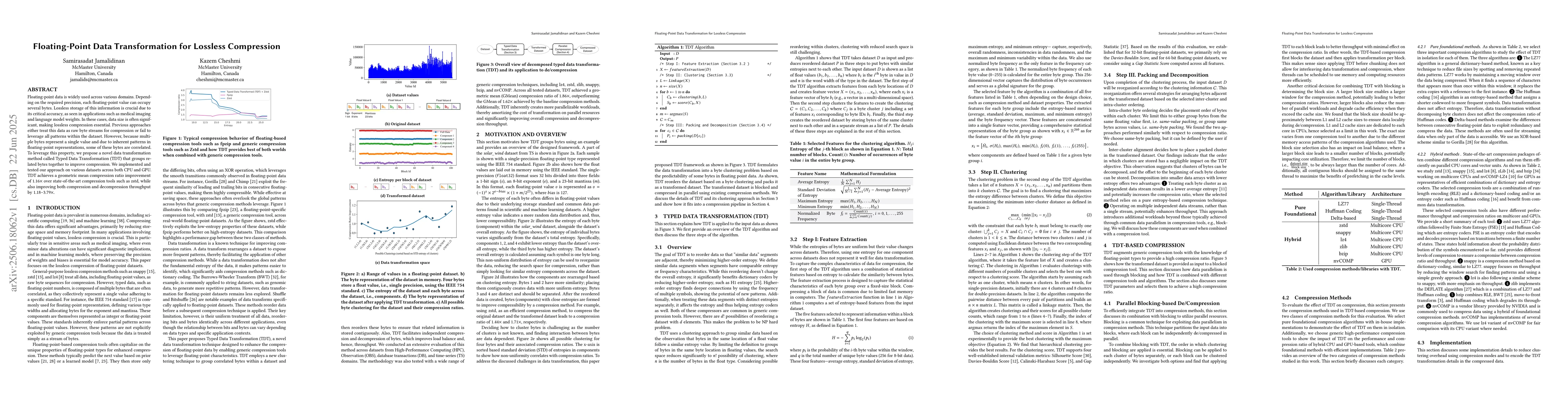 A novel lossless compression algorithm for floating-point data was developed and evaluated in this research