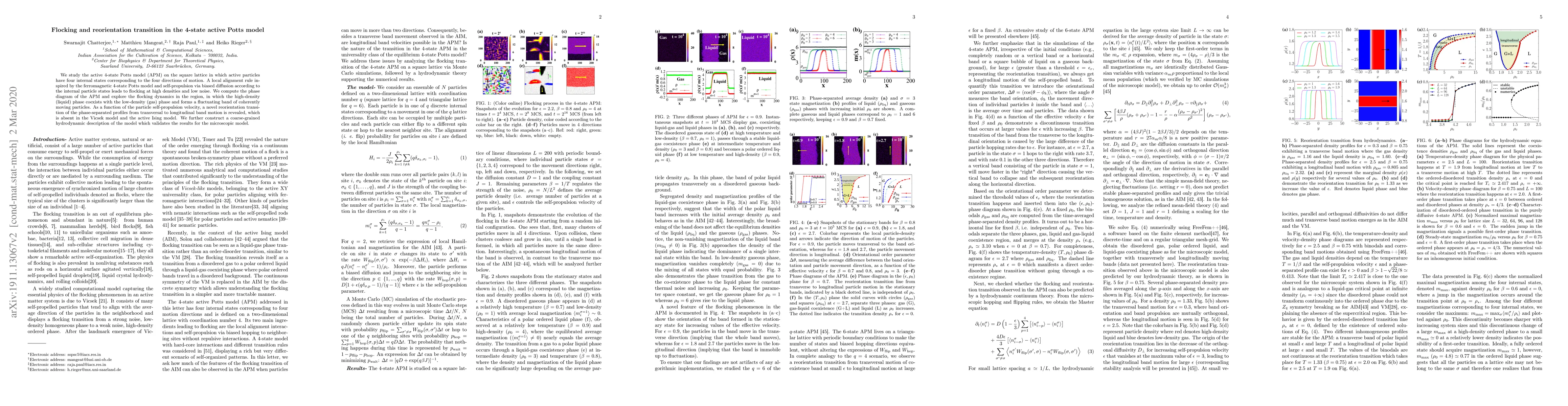 Researchers study flocking behavior in a 4-state active Potts model, revealing a novel reorientation transition where phase-separated profiles change from transversal to longitudinal band motion as particle self-propulsion velocity increases.