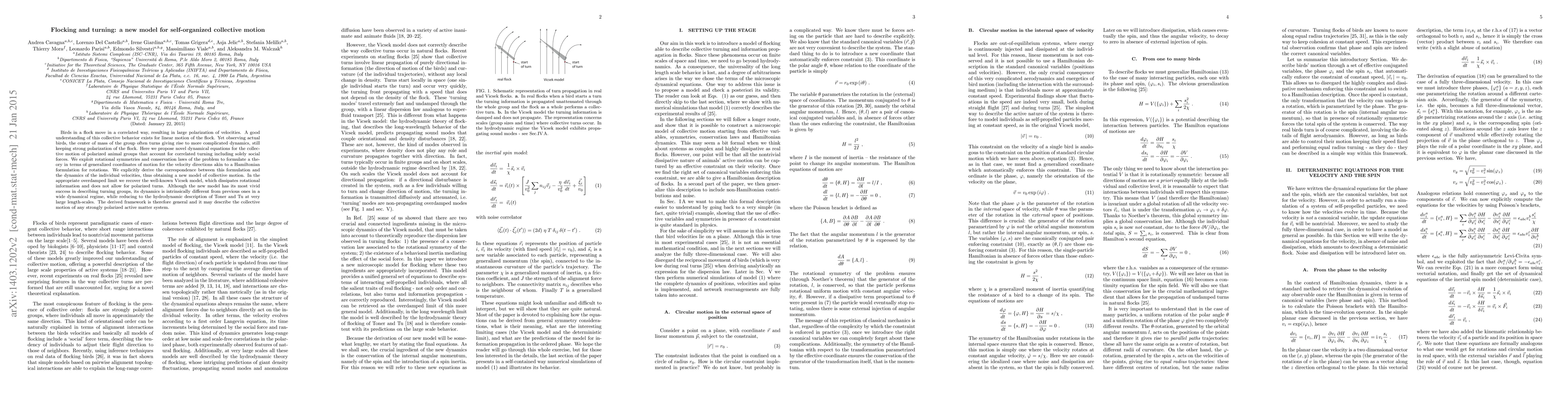 Birds in a flock move in a correlated way, resulting in large polarization of velocities. A good understanding of this collective behavior exists for linear motion of the flock. Yet observing actual birds, the center of mass of the group often turns giving rise to more complicated dynamics, still keeping strong polarization of the flock. Here we propose novel dynamical equations for the collective motion of polarized animal groups that account for correlated turning including solely social forces. We exploit rotational symmetries and conservation laws of the problem to formulate a theory in terms of generalized coordinates of motion for the velocity directions akin to a Hamiltonian formulation for rotations. We explicitly derive the correspondence between this formulation and the dynamics of the individual velocities, thus obtaining a new model of collective motion. In the appropriate overdamped limit we recover the well-known Vicsek model, which dissipates rotational information and does not allow for polarized turns. Although the new model has its most vivid success in describing turning groups, its dynamics is intrinsically different from previous ones in a wide dynamical regime, while reducing to the hydrodynamic description of Toner and Tu at very large length-scales. The derived framework is therefore general and it may describe the collective motion of any strongly polarized active matter system.