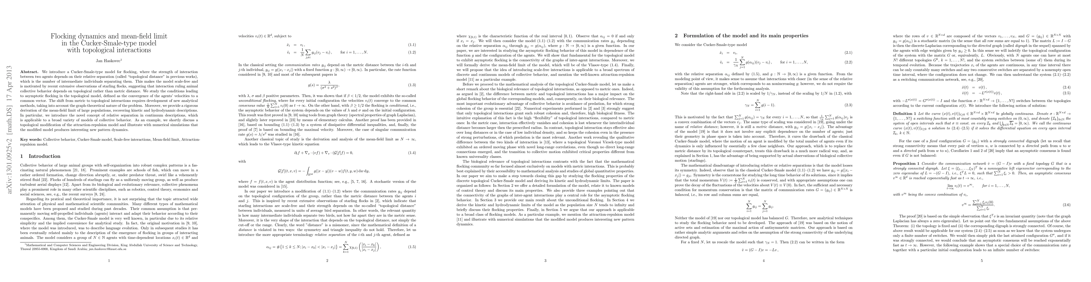 The research introduces a Cucker-Smale-type model for flocking where interaction strength depends on topological distance, motivated by observations of starling flocks. New analytical methods are developed to study conditions for asymptotic flocking and to derive the mean-field limit for large populations.