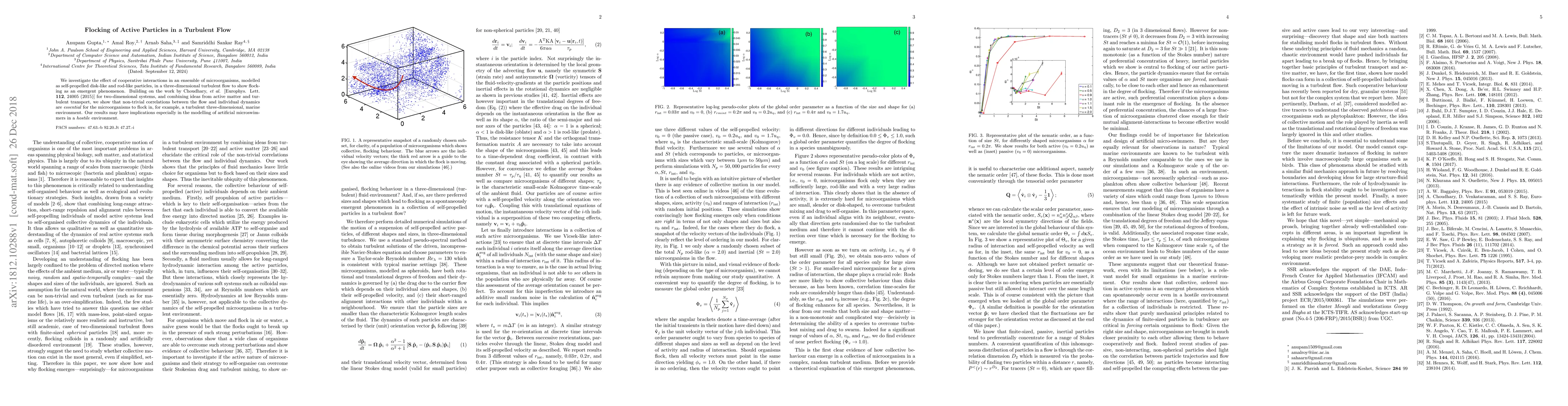 This paper explores how cooperative interactions among self-propelled microorganisms, modeled as particles, lead to flocking behavior in a three-dimensional turbulent flow. The study highlights the importance of non-trivial correlations between flow dynamics and individual particle behavior for the emergence of flocking, with potential applications in modeling artificial microswimmers in challenging environments.