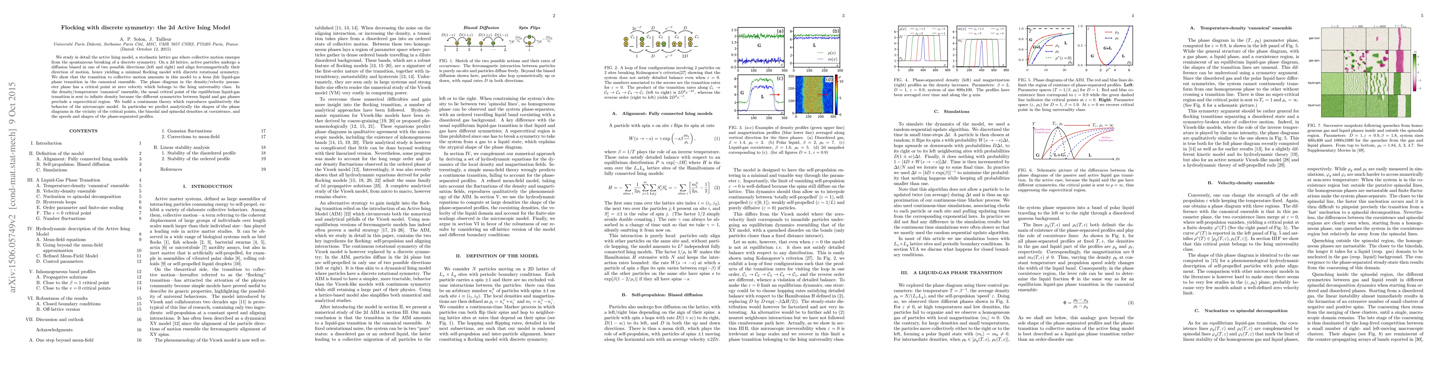 This paper investigates the 2D Active Ising Model, a stochastic lattice gas where collective motion arises from symmetry breaking, demonstrating a liquid-gas phase transition with a critical point belonging to the Ising universality class. The study also predicts the shapes of phase diagrams and profiles near critical points using a continuum theory.
