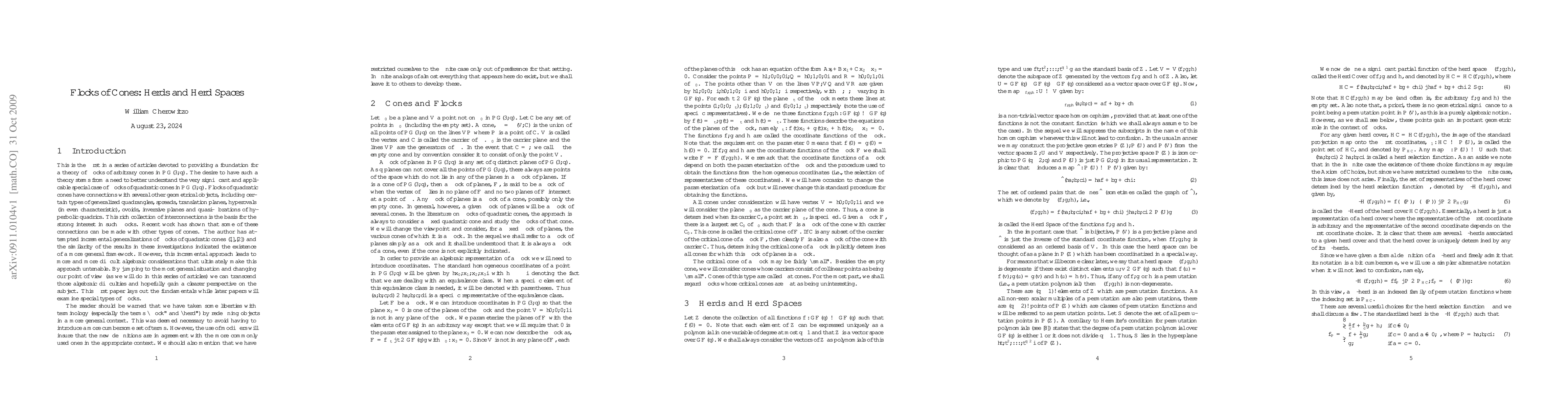 This is the first in a series of articles devoted to providing a foundation for a theory of flocks of arbitrary cones in PG(3,q). The desire to have such a theory stems from a need to better understand the very significant and applicable special case of flocks of quadratic cones in PG(3,q). Flocks of quadratic cones have connections with several other geometrical objects, including certain types of generalized quadrangles, spreads, translation planes, hyperovals (in even characteristic), ovoids, inversive planes and quasi-fibrations of hyperbolic quadrics. This rich collection of interconnections is the basis for the strong interest in such flocks. Recent work has indicated that some of these connections can be extended to non-quadratic cones, so there is an additional desire to have such a theory.