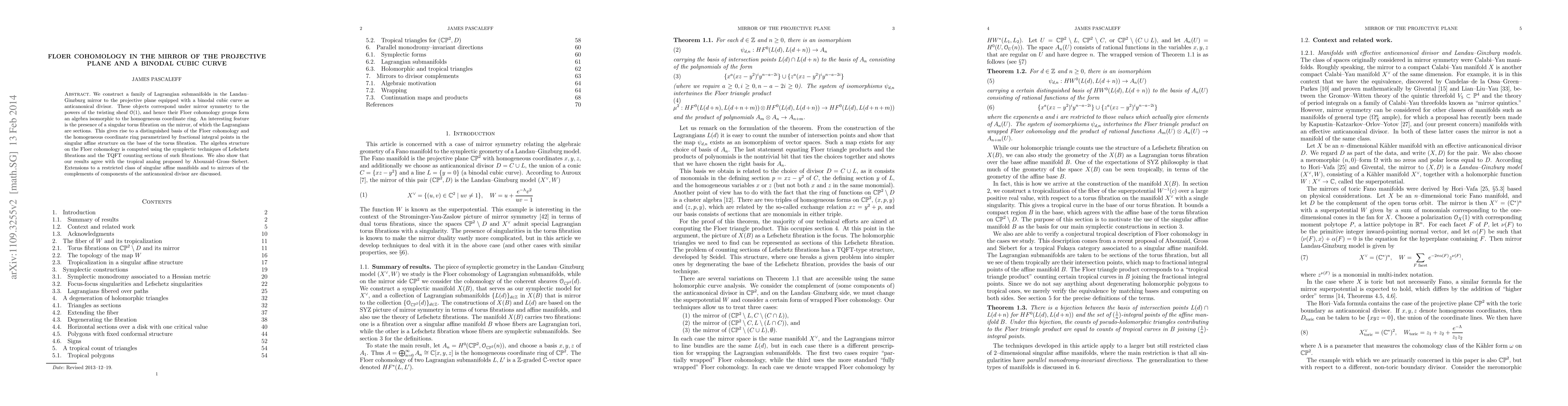 We construct a family of Lagrangian submanifolds in the Landau--Ginzburg mirror to the projective plane equipped with a binodal cubic curve as anticanonical divisor. These objects correspond under mirror symmetry to the powers of the twisting sheaf O(1), and hence their Floer cohomology groups form an algebra isomorphic to the homogeneous coordinate ring. An interesting feature is the presence of a singular torus fibration on the mirror, of which the Lagrangians are sections. The algebra structure on the Floer cohomology is computed by counting sections of Lefschetz fibrations. Our results agree with the tropical analog proposed by Abouzaid--Gross--Siebert. An extension to mirrors of the complements of components of the anticanonical divisor is discussed.