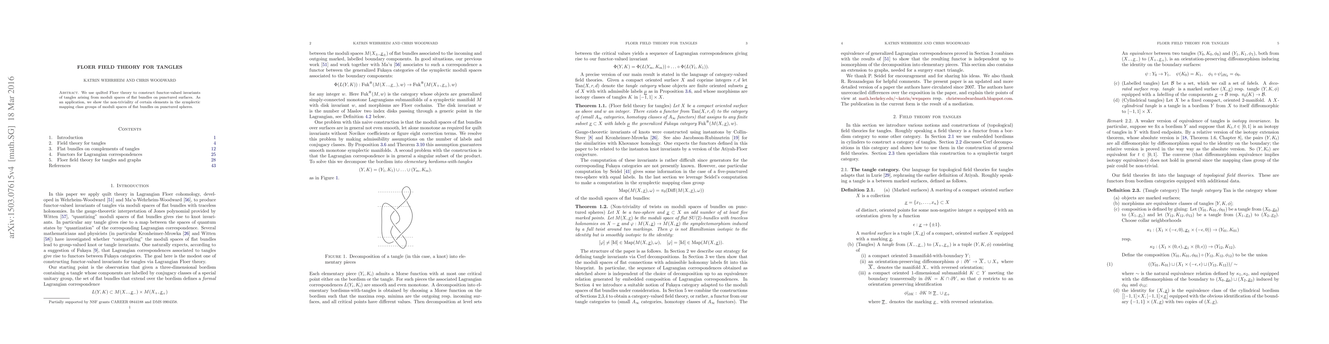 The paper introduces a novel application of quilted Floer theory to tangles, linking it with the symplectic mapping class groups.