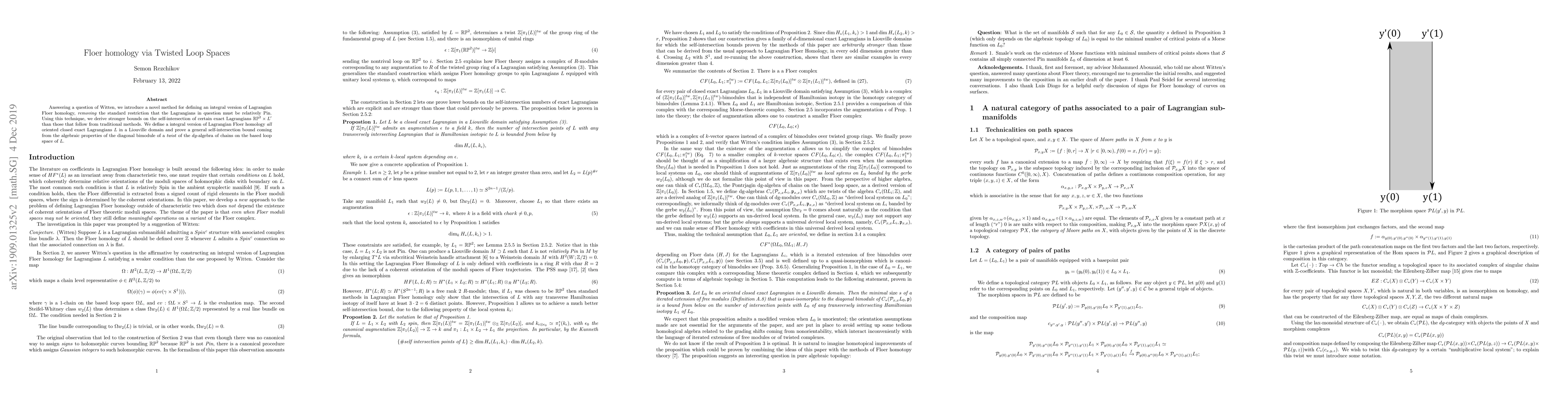 Answering a question of Witten, we introduce a novel method for defining an integral version of Lagrangian Floer homology, removing the standard restriction that the Lagrangians in question must be relatively Pin. Using this technique, we derive stronger bounds on the self-intersection of certain exact Lagrangians $\mathbb{RP}^2 \times L'$ than those that follow from traditional methods. We define a integral version of Lagrangian Floer homology all oriented closed exact Lagrangians $L$ in a Liouville domain and prove a general self-intersection bound coming from the algebraic properties of the diagonal bimodule of a twist of the dg-algebra of chains on the based loop space of $L$.