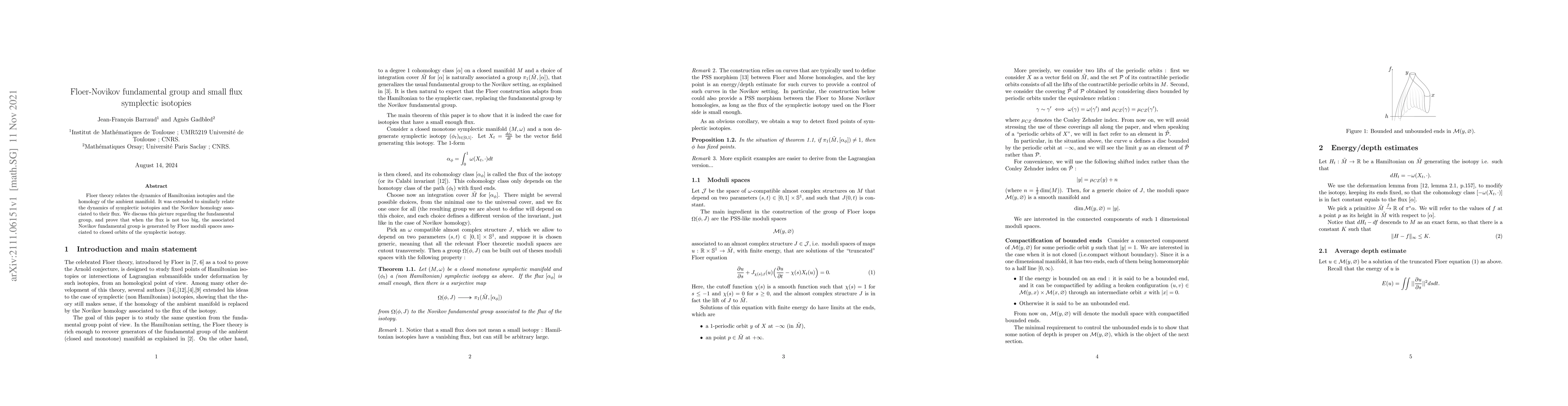 This paper explores the relationship between symplectic isotopies and Novikov homology, showing that under small flux conditions, the Novikov fundamental group is generated by Floer moduli spaces linked to closed orbits of the isotopy. The study extends Floer theory to symplectic isotopies.