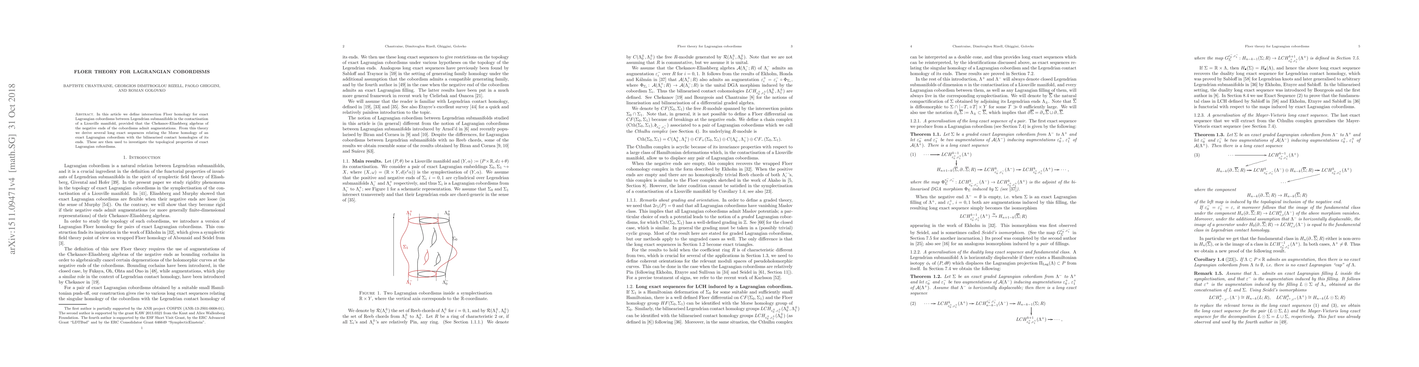 This work provides a framework for studying topological properties of exact Lagrangian cobordisms through Floer theory, which has implications in symplectic geometry and low-dimensional topology.