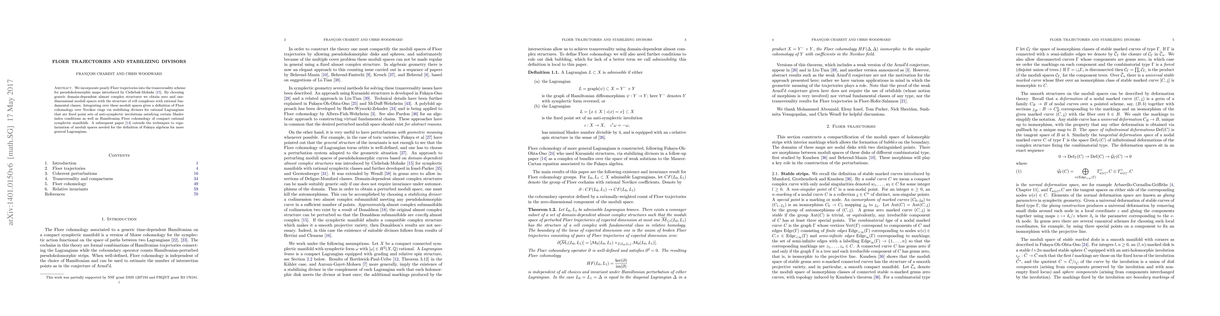 This paper defines Floer cohomology over Novikov rings using pearly Floer trajectories and stabilizing divisors for compact symplectic manifolds with specific Lagrangians and Maslov index conditions. The approach yields zero and one-dimensional moduli spaces structured as rational cell complexes.
