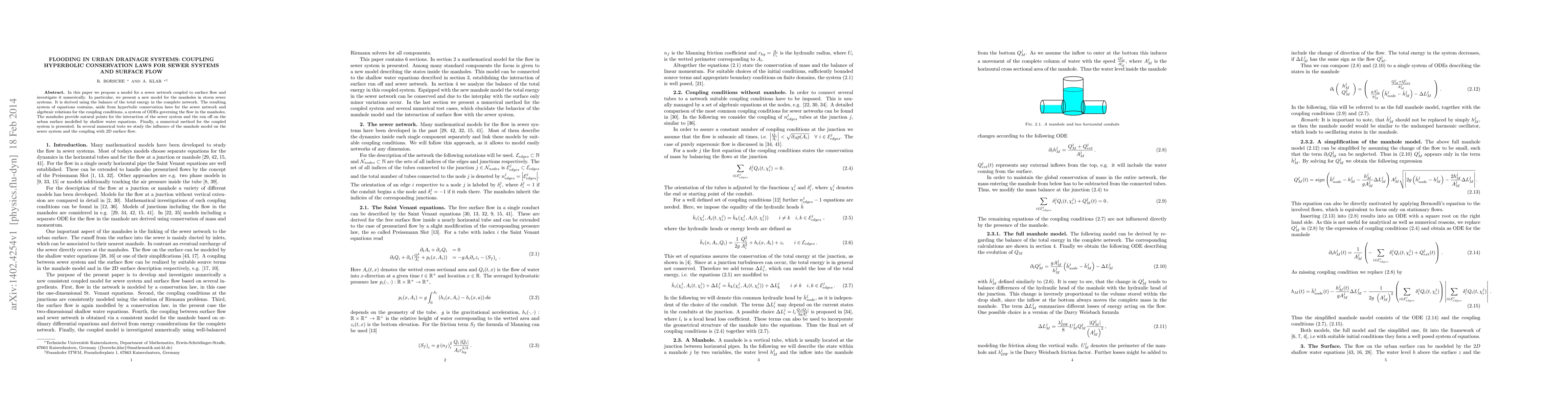 Researchers developed a new model for sewer networks connected to surface flow, improving understanding of flooding in urban drainage systems and highlighting the importance of manholes in coupling sewer and surface water flow.