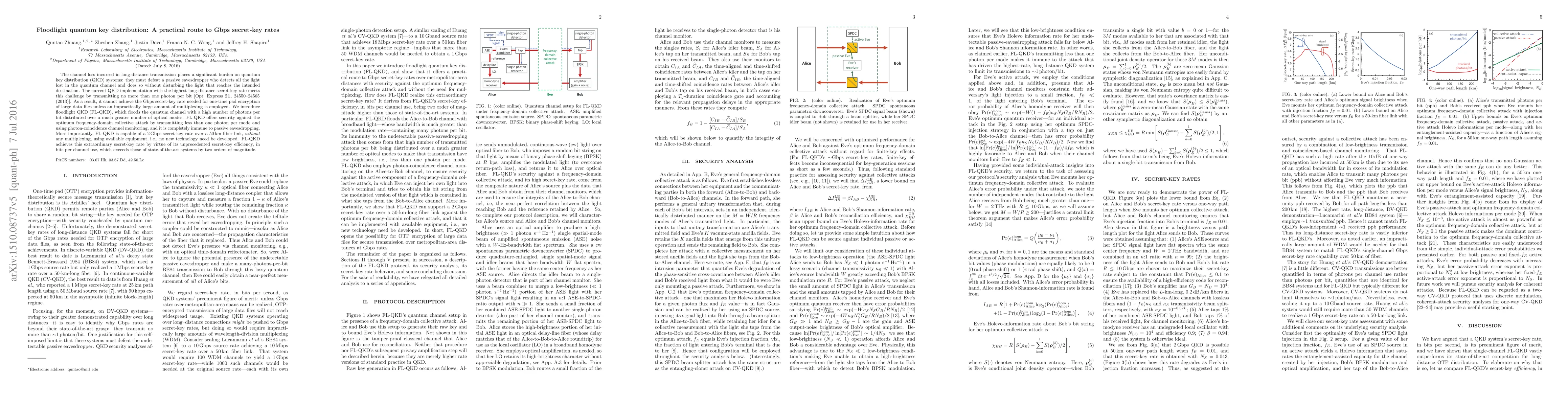 Floodlight Quantum Key Distribution (FL-QKD) enhances long-distance quantum key distribution (QKD) by flooding the channel with multiple photons per bit, achieving a 2 Gbps secret-key rate over 50 km without multiplexing, and offering unprecedented secret-key efficiency.
