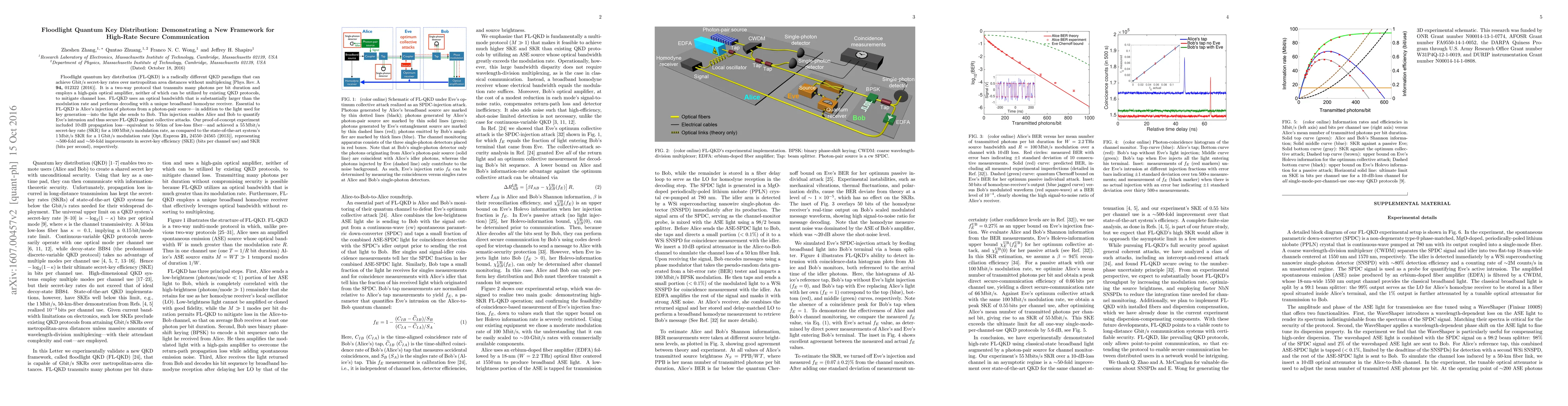 Floodlight Quantum Key Distribution (FL-QKD) presents a novel two-way protocol achieving Gbit/s secret-key rates over metropolitan distances without multiplexing, significantly outperforming existing QKD systems. The protocol employs a high-gain optical amplifier and a broadband homodyne receiver, enabling a 55 Mbit/s secret-key rate for a 100 Mbit/s modulation rate, demonstrating a 500-fold improvement in secret-key efficiency.
