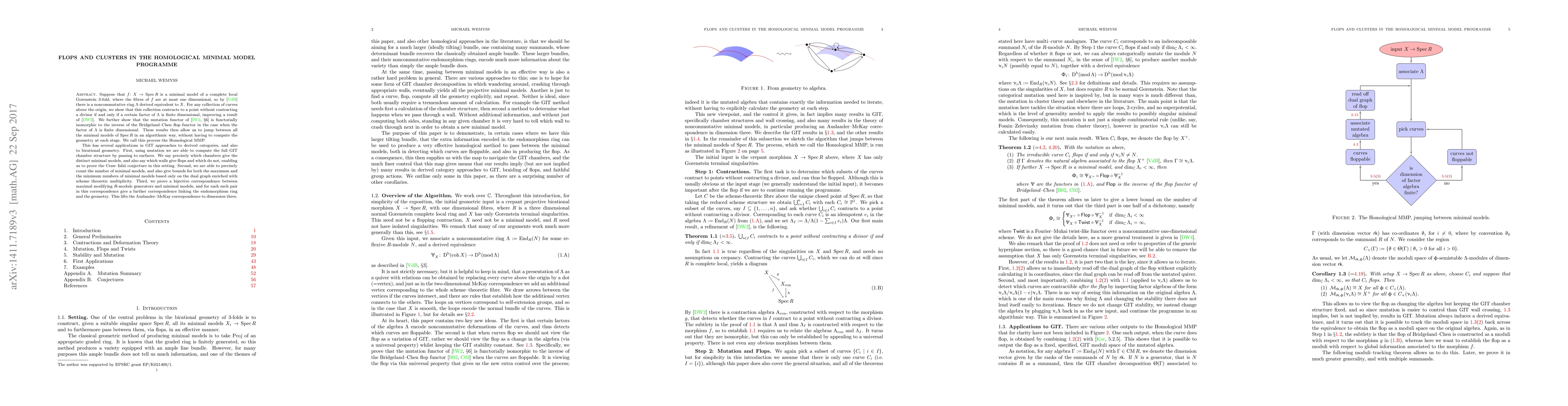 Suppose that $f\colon X\to\mathrm{Spec}\, R$ is a minimal model of a complete local Gorenstein 3-fold, where the fibres of $f$ are at most one dimensional, so by [VdB1d] there is a noncommutative ring $\Lambda$ derived equivalent to $X$. For any collection of curves above the origin, we show that this collection contracts to a point without contracting a divisor if and only if a certain factor of $\Lambda$ is finite dimensional, improving a result of [DW2]. We further show that the mutation functor of [S6][IW4] is functorially isomorphic to the inverse of the Bridgeland--Chen flop functor in the case when the factor of $\Lambda$ is finite dimensional. These results then allow us to jump between all the minimal models of $\mathrm{Spec}\, R$ in an algorithmic way, without having to compute the geometry at each stage. We call this process the Homological MMP. This has several applications in GIT approaches to derived categories, and also to birational geometry. First, using mutation we are able to compute the full GIT chamber structure by passing to surfaces. We say precisely which chambers give the distinct minimal models, and also say which walls give flops and which do not, enabling us to prove the Craw--Ishii conjecture in this setting. Second, we are able to precisely count the number of minimal models, and also give bounds for both the maximum and the minimum numbers of minimal models based only on the dual graph enriched with scheme theoretic multiplicity. Third, we prove a bijective correspondence between maximal modifying $R$-module generators and minimal models, and for each such pair in this correspondence give a further correspondence linking the endomorphism ring and the geometry. This lifts the Auslander--McKay correspondence to dimension three.
