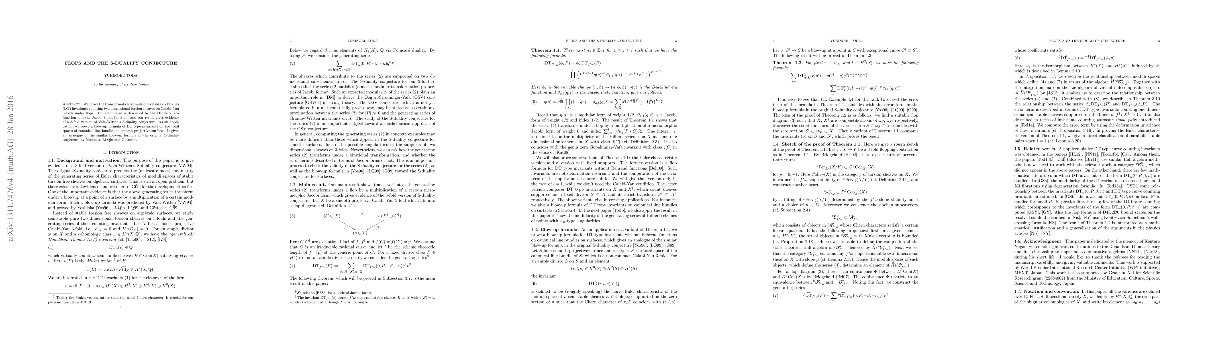 This paper proves the transformation formula for Donaldson-Thomas invariants under flops on Calabi-Yau 3-folds, providing evidence for a 3-fold version of the S-duality conjecture. It also establishes a blow-up formula for DT type invariants on canonical line bundles over smooth projective surfaces.
