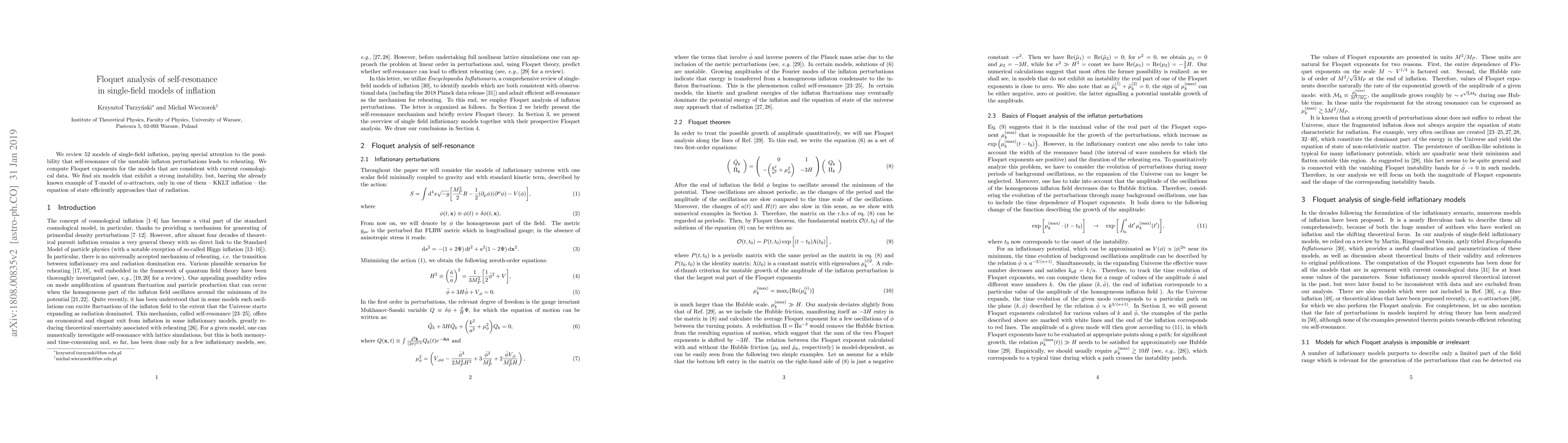 We review 51 models of single-field inflation, paying special attention to the possibility that self-resonance of the unstable inflaton perturbations leads to reheating. We compute Floquet exponents for the models that are consistent with current cosmological data. We find five models that exhibit a strong instability, but only in one of them -- KKLT inflation -- the equation of state efficiently approaches that of radiation.