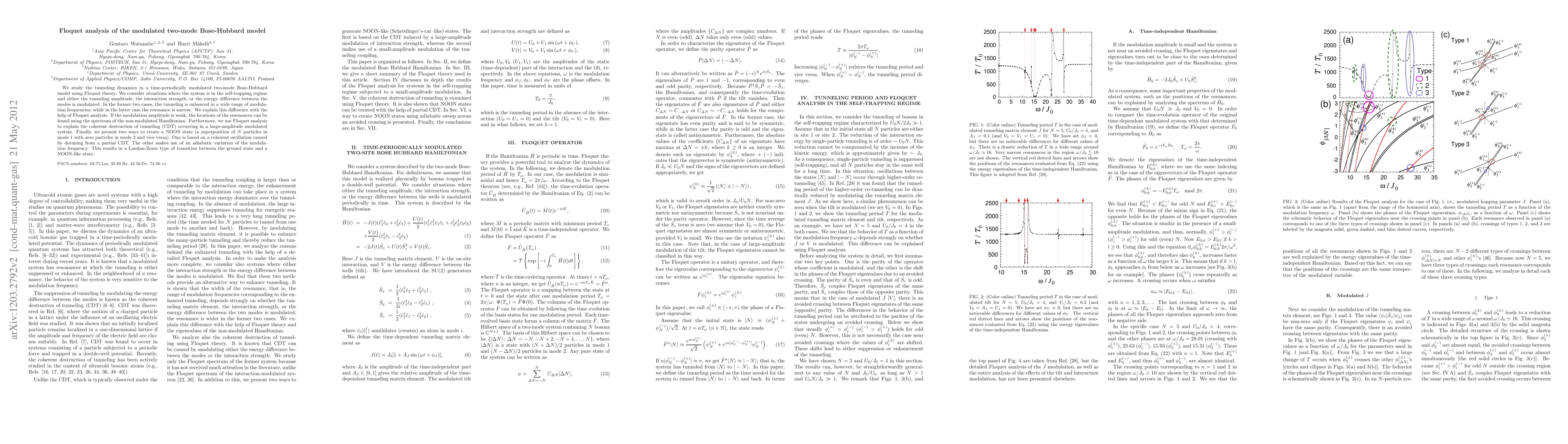 We study the tunneling dynamics in a time-periodically modulated two-mode Bose-Hubbard model using Floquet theory. We consider situations where the system is in the self-trapping regime and either the tunneling amplitude, the interaction strength, or the energy difference between the modes is modulated. In the former two cases, the tunneling is enhanced in a wide range of modulation frequencies, while in the latter case the resonance is narrow. We explain this difference with the help of Floquet analysis. If the modulation amplitude is weak, the locations of the resonances can be found using the spectrum of the non-modulated Hamiltonian. Furthermore, we use Floquet analysis to explain the coherent destruction of tunneling (CDT) occurring in a large-amplitude modulated system. Finally, we present two ways to create a NOON state (a superposition of $N$ particles in mode 1 with zero particles in mode 2 and vice versa). One is based on a coherent oscillation caused by detuning from a partial CDT. The other makes use of an adiabatic variation of the modulation frequency. This results in a Landau-Zener type of transition between the ground state and a NOON-like state.