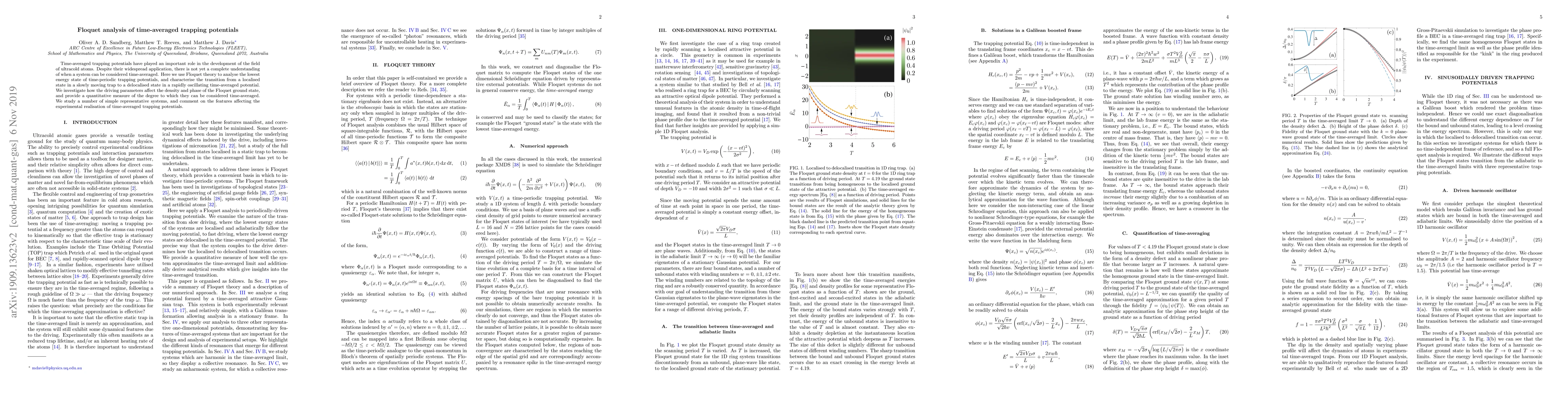 Time-averaged trapping potentials have played an important role in the development of the field of ultracold atoms. Despite their widespread application, there is not yet a complete understanding of when a system can be considered time-averaged. Here we use Floquet theory to analyse the lowest energy state of time-periodic trapping potentials, and characterise the transition from a localised state in a slowly moving trap to a delocalised state in a rapidly oscillating time-averaged potential. We investigate how the driving parameters affect the density and phase of the Floquet ground state, and provide a quantitative measure of the degree to which they can be considered time-averaged. We study a number of simple representative systems, and comment on the features affecting the experimental realisation of time-averaged trapping potentials.