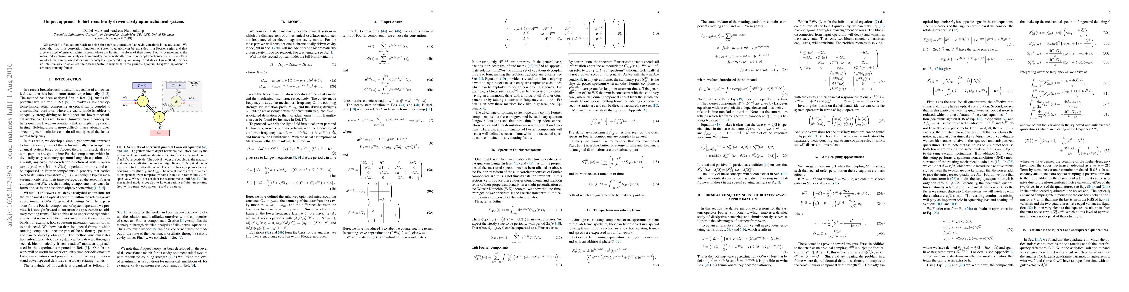 We develop a Floquet approach to solve time-periodic quantum Langevin equations in steady state. We show that two-time correlation functions of system operators can be expanded in a Fourier series and that a generalized Wiener-Khinchin theorem relates the Fourier transform of their zeroth Fourier component to the measured spectrum. We apply our framework to bichromatically driven cavity optomechanical systems, a setting in which mechanical oscillators have recently been prepared in quantum-squeezed states. Our method provides an intuitive way to calculate the power spectral densities for time-periodic quantum Langevin equations in arbitrary rotating frames.