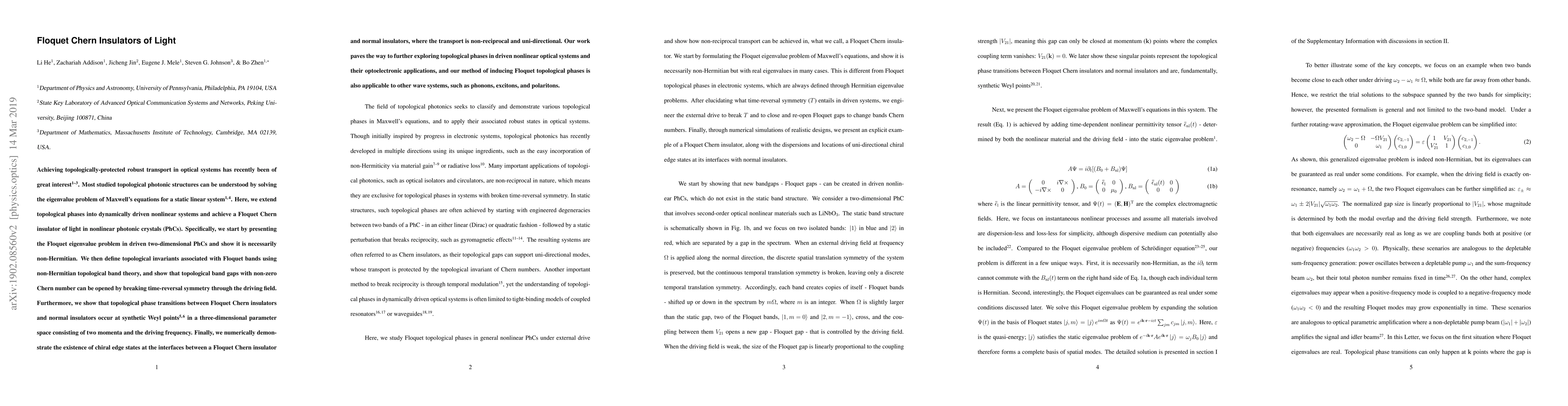 This paper explores the creation of topologically-protected transport in dynamically driven nonlinear photonic crystals, achieving a Floquet Chern insulator of light. It introduces non-Hermitian topological band theory to define invariants for Floquet bands and demonstrates chiral edge states, paving the way for optoelectronic applications and broader wave systems.
