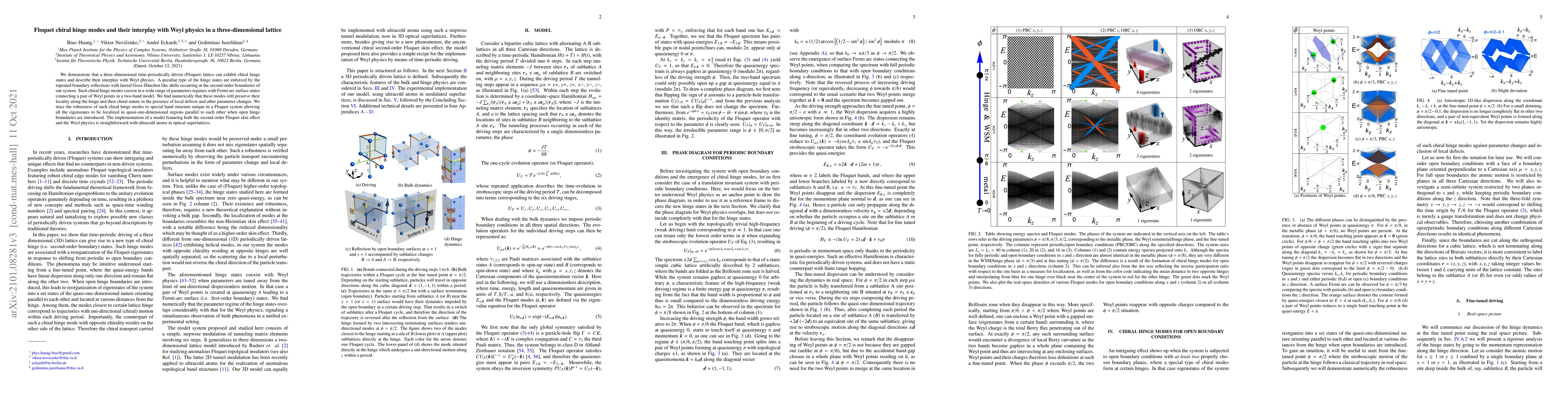 We demonstrate that a three dimensional time-periodically driven (Floquet) lattice can exhibit chiral hinge states and describe their interplay with Weyl physics. A peculiar type of the hinge states are enforced by the repeated boundary reflections with lateral Goos-H\"{a}nchen like shifts occurring at the second-order boundaries of our system. Such chiral hinge modes coexist in a wide range of parameters regimes with Fermi arc surface states connecting a pair of Weyl points in a two-band model. We find numerically that these modes still preserve their locality along the hinge and their chiral nature in the presence of local defects and other parameter changes. We trace the robustness of such chiral hinge modes to special band structure unique in a Floquet system allowing all the eigenstates to be localized in quasi-one-dimensional regions parallel to each other when open hinge boundaries are introduced. The implementation of a model featuring both the second-order Floquet skin effect and the Weyl physics is straightforward with ultracold atoms in optical superlattices.