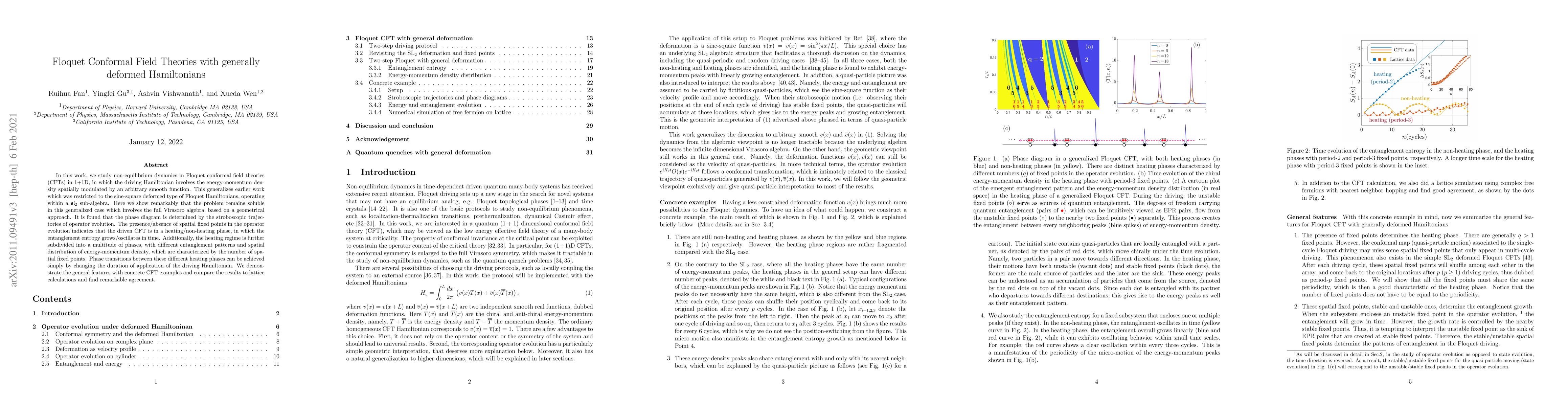 Researchers studied Floquet conformal field theories with generally deformed Hamiltonians in 1+1D, showing they remain soluble and exhibit phase transitions based on the number of spatial fixed points, which indicate heating or non-heating phases.