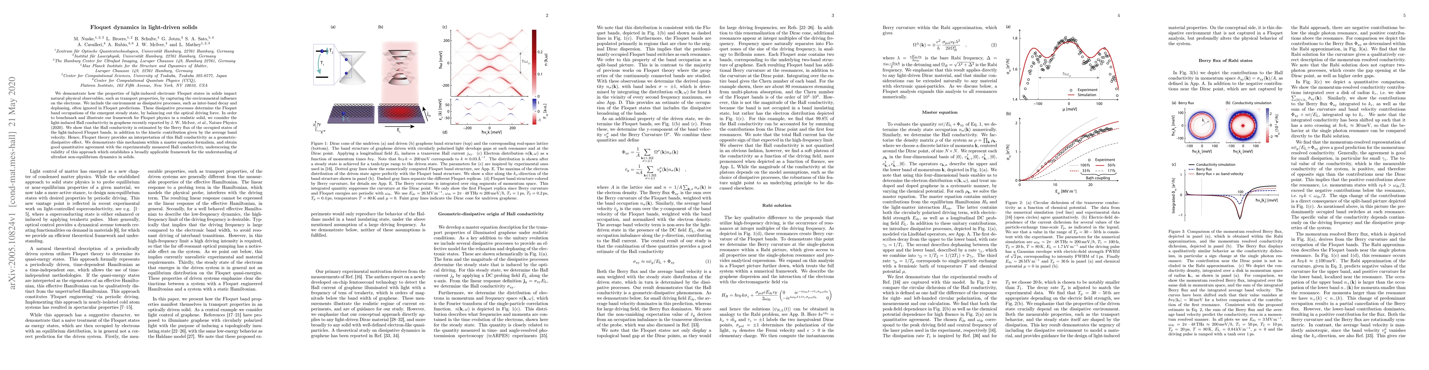 We demonstrate how the properties of light-induced electronic Floquet states in solids impact natural physical observables, such as transport properties, by capturing the environmental influence on the electrons. We include the environment as dissipative processes, such as inter-band decay and dephasing, often ignored in Floquet predictions. These dissipative processes determine the Floquet band occupations of the emergent steady state, by balancing out the optical driving force. In order to benchmark and illustrate our framework for Floquet physics in a realistic solid, we consider the light-induced Hall conductivity in graphene recently reported by J.~W.~McIver, et al., Nature Physics (2020). We show that the Hall conductivity is estimated by the Berry flux of the occupied states of the light-induced Floquet bands, in addition to the kinetic contribution given by the average band velocity. Hence, Floquet theory provides an interpretation of this Hall conductivity as a geometric-dissipative effect. We demonstrate this mechanism within a master equation formalism, and obtain good quantitative agreement with the experimentally measured Hall conductivity, underscoring the validity of this approach which establishes a broadly applicable framework for the understanding of ultrafast non-equilibrium dynamics in solids.