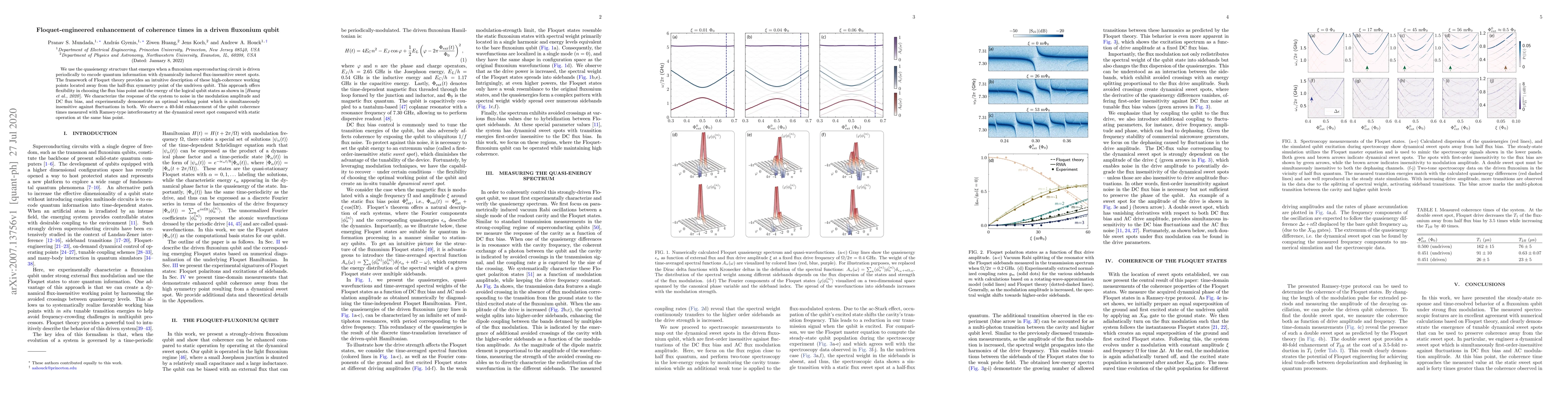 We use the quasienergy structure that emerges when a fluxonium superconducting circuit is driven periodically to encode quantum information with dynamically induced flux-insensitive sweet spots. The framework of Floquet theory provides an intuitive description of these high-coherence working points located away from the half-flux symmetry point of the undriven qubit. This approach offers flexibility in choosing the flux bias point and the energy of the logical qubit states as shown in [\textit{Huang et al., 2020}]. We characterize the response of the system to noise in the modulation amplitude and DC flux bias, and experimentally demonstrate an optimal working point which is simultaneously insensitive against fluctuations in both. We observe a 40-fold enhancement of the qubit coherence times measured with Ramsey-type interferometry at the dynamical sweet spot compared with static operation at the same bias point.