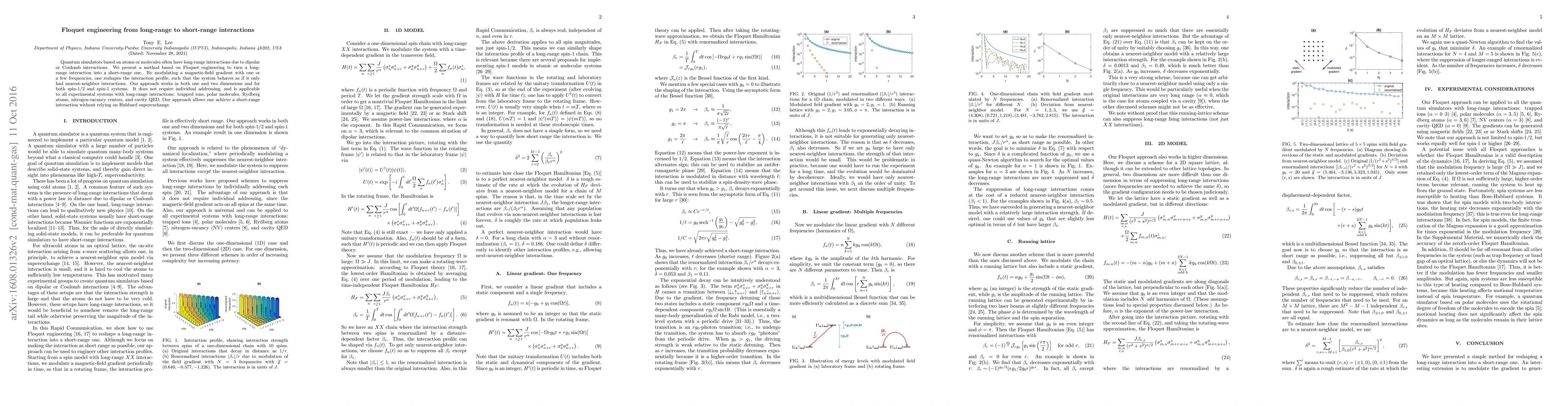 Quantum simulators based on atoms or molecules often have long-range interactions due to dipolar or Coulomb interactions. We present a method based on Floquet engineering to turn a long-range interaction into a short-range one. By modulating a magnetic-field gradient with one or a few frequencies, one reshapes the interaction profile, such that the system behaves as if it only had nearest-neighbor interactions. Our approach works in both one and two dimensions and for both spin-1/2 and spin-1 systems. It does not require individual addressing, and is applicable to all experimental systems with long-range interactions: trapped ions, polar molecules, Rydberg atoms, nitrogen-vacancy centers, and cavity QED. Our approach allows one achieve a short-range interaction without relying on Hubbard superexchange.